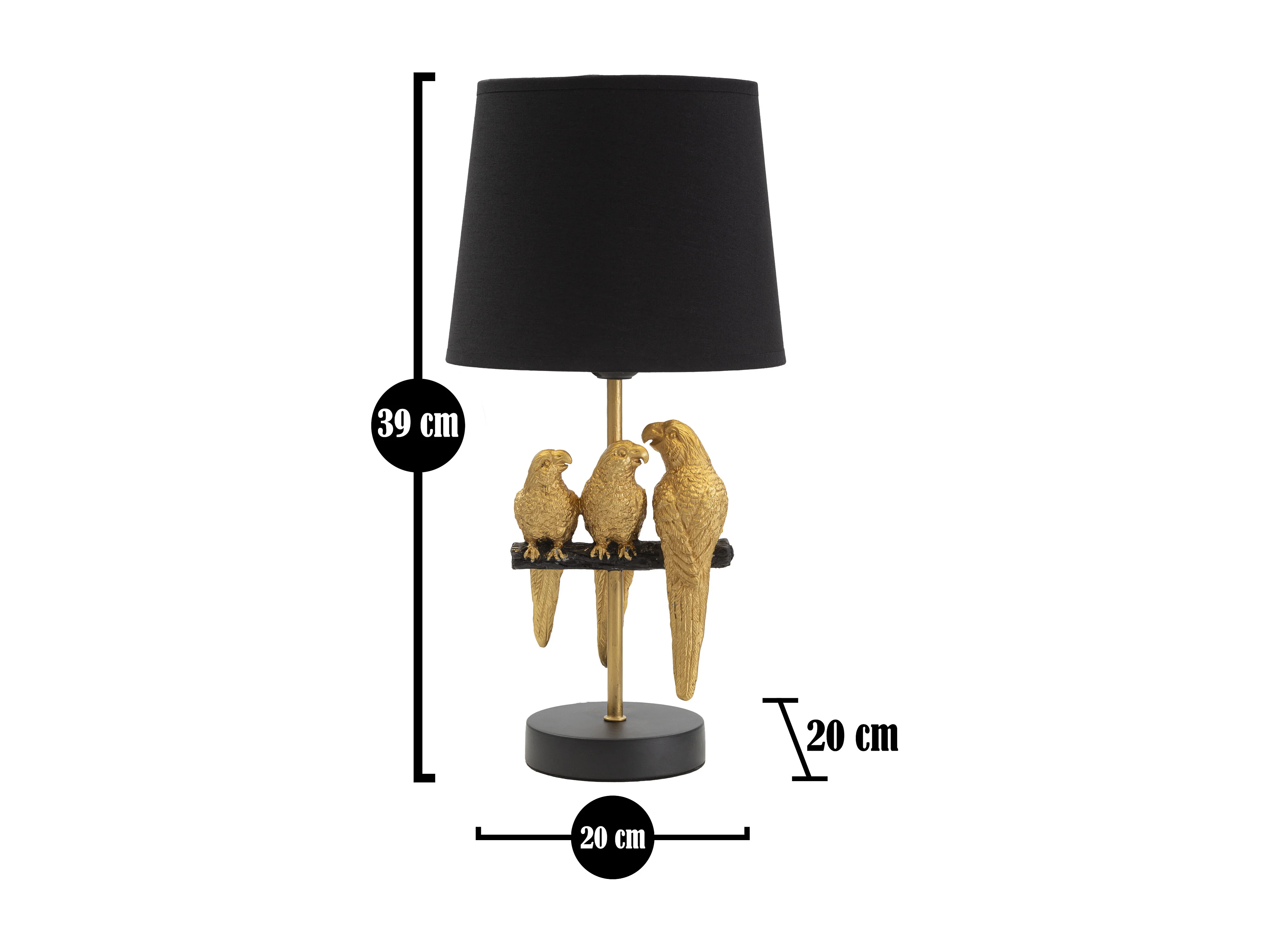 Lampe à Poser Design "Perroquets" 39cm Or & Noir