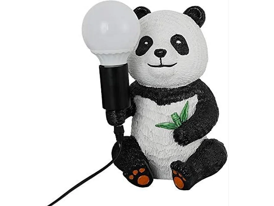 Lampe de table créative en résine représentant un panda assis, culot E27, idéale pour un salon ou une chambre d'enfant. Ampoule non incluse