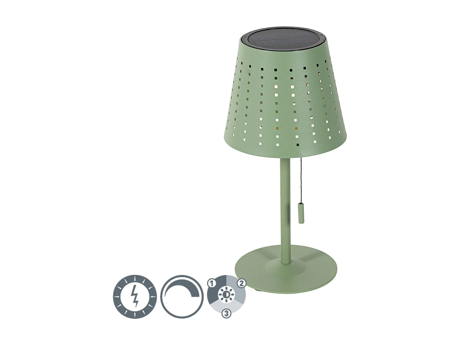 Lampe de table d'extérieur verte avec LED dimmable en 3 étapes rechargeable et solaire - Ferre