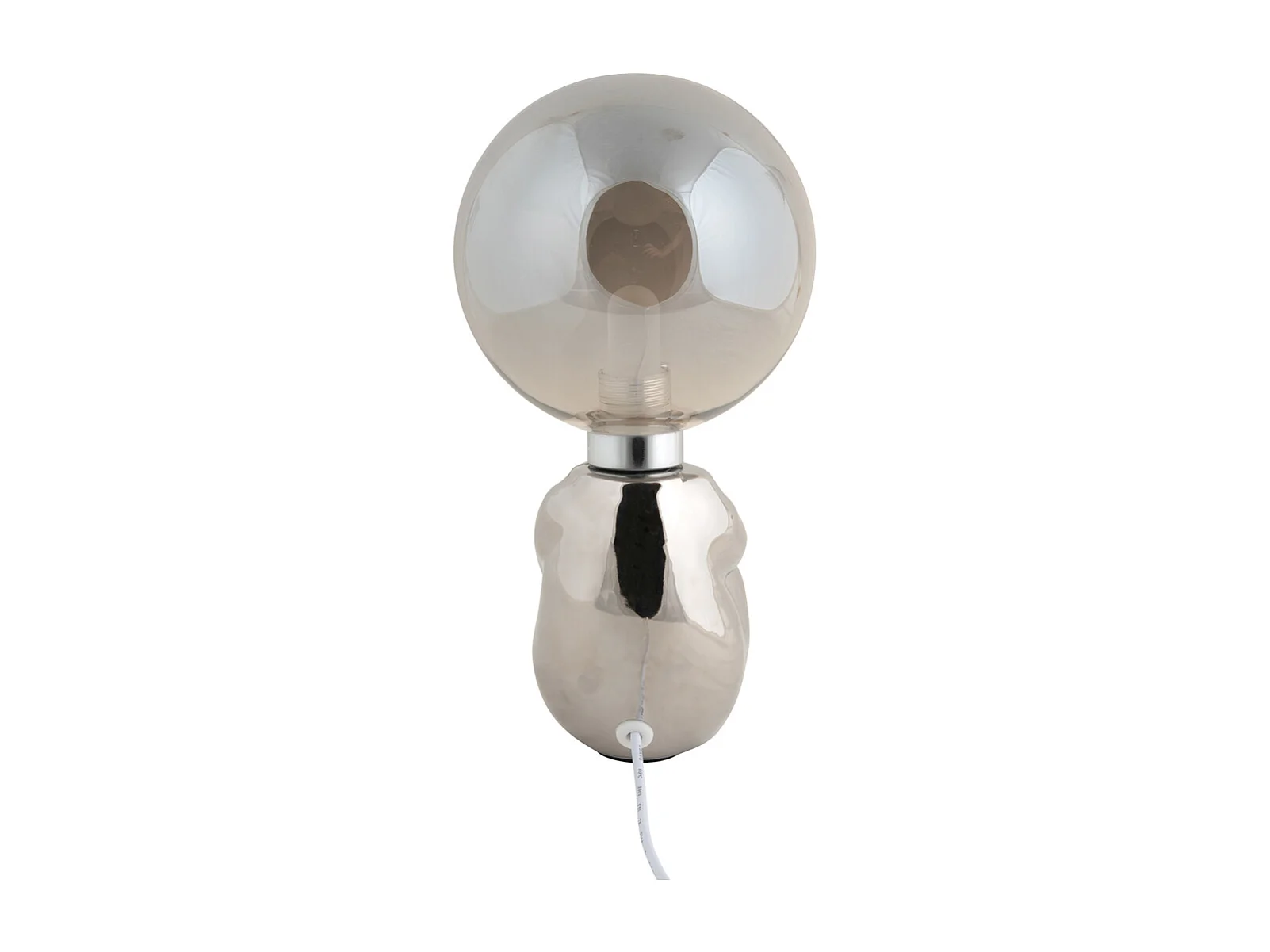 Lampe Ceramique Finition Chromee H32.5cm Argent, Blanc