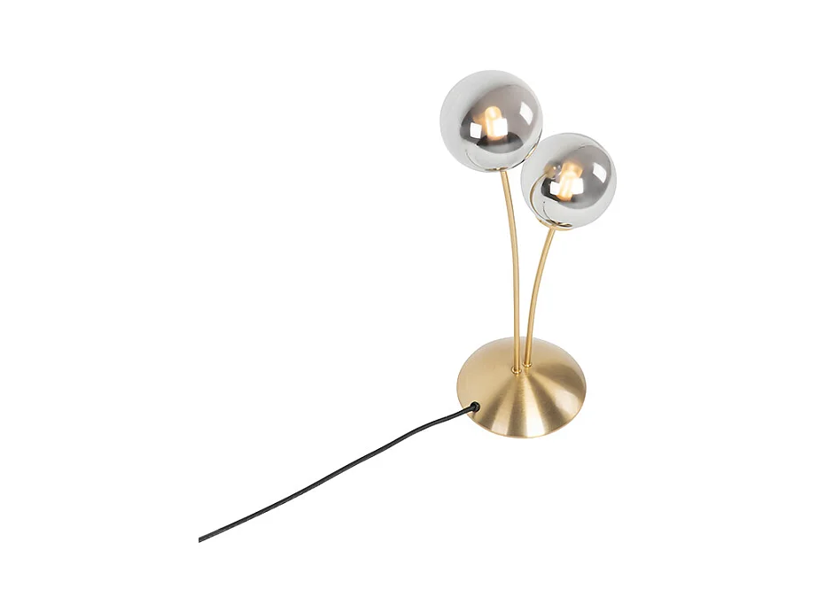 Lampe de table moderne dorée à 2 lumières avec verre fumé - Athènes