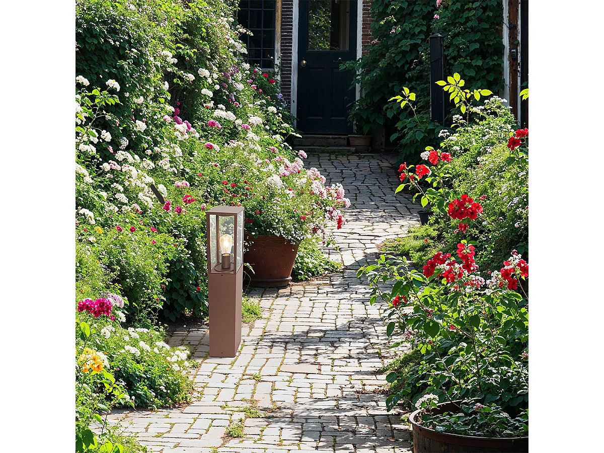 Lampe d'extérieur industrielle sur pied brun rouille 80 cm IP44 - Charlois
