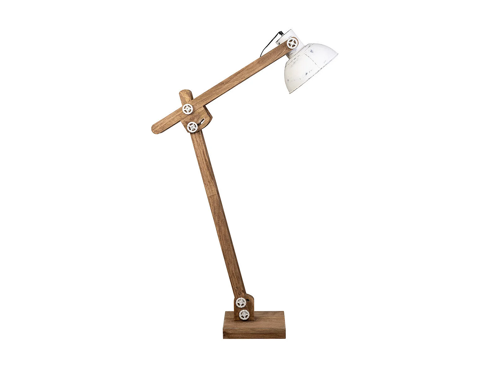 Lampe sur pied articulée en bois et métal blanc 26x70x125h