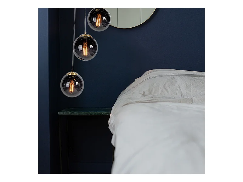 Suspension Art Déco noire 3 lumières avec verre fumé - Busa