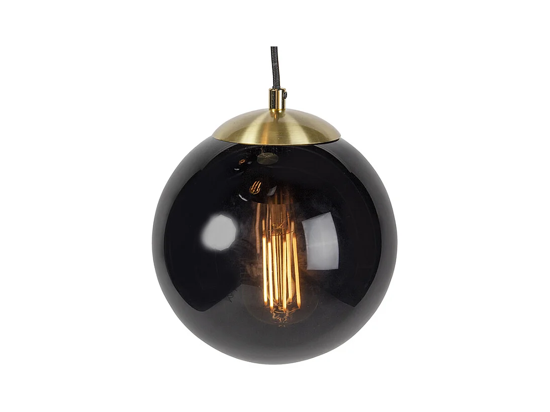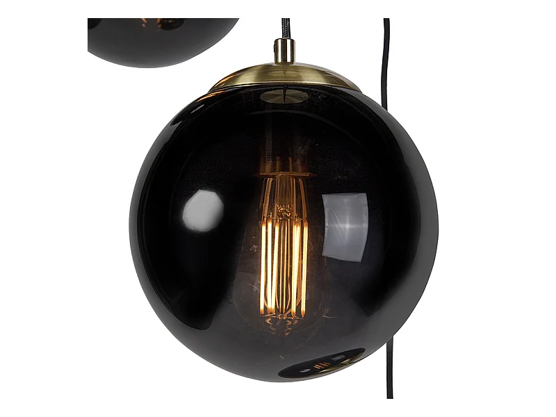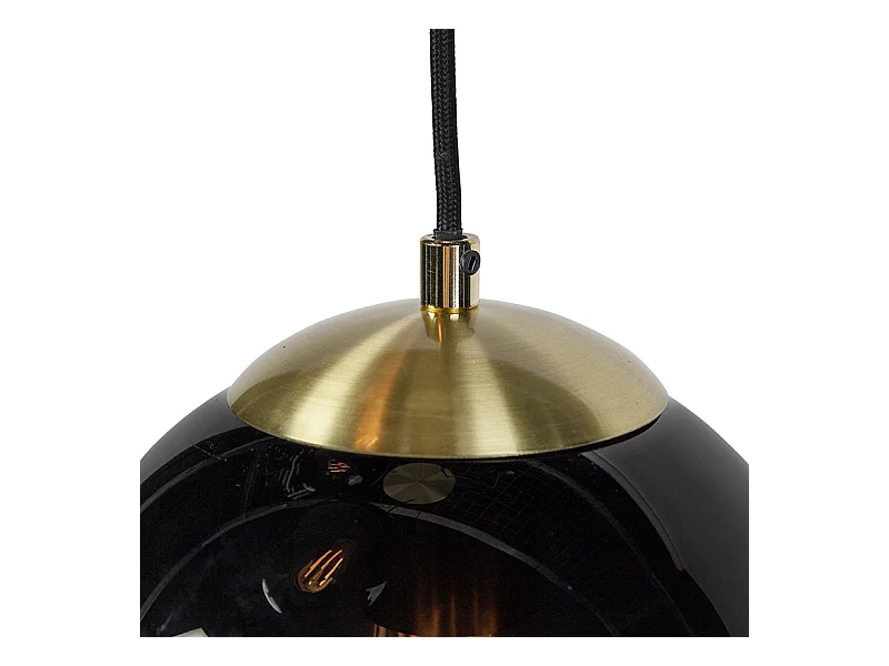 Lampe à suspension Art Déco en laiton avec verre noir à 3 lumières - Pallon