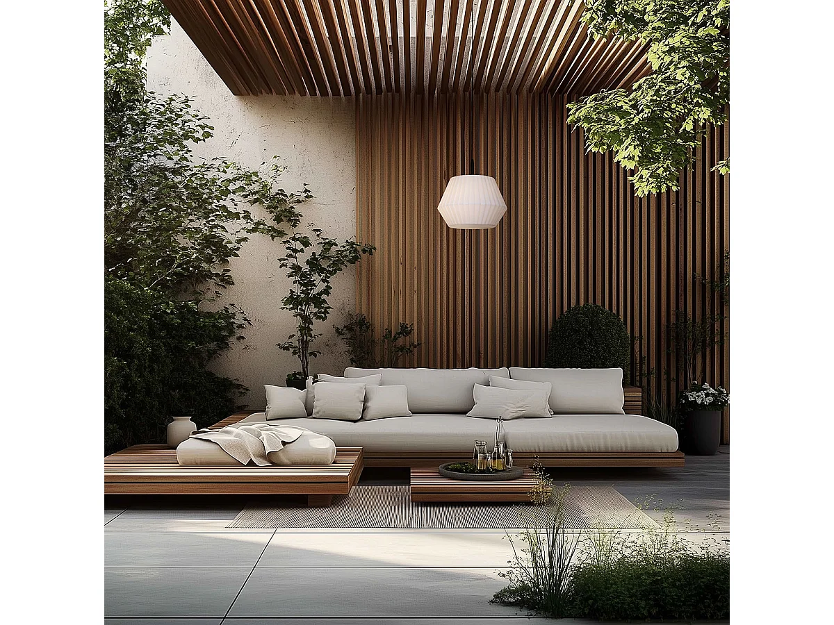 Lampe suspendue d'extérieur moderne noire avec abat-jour blanc 32,9 cm IP44 - Robbert