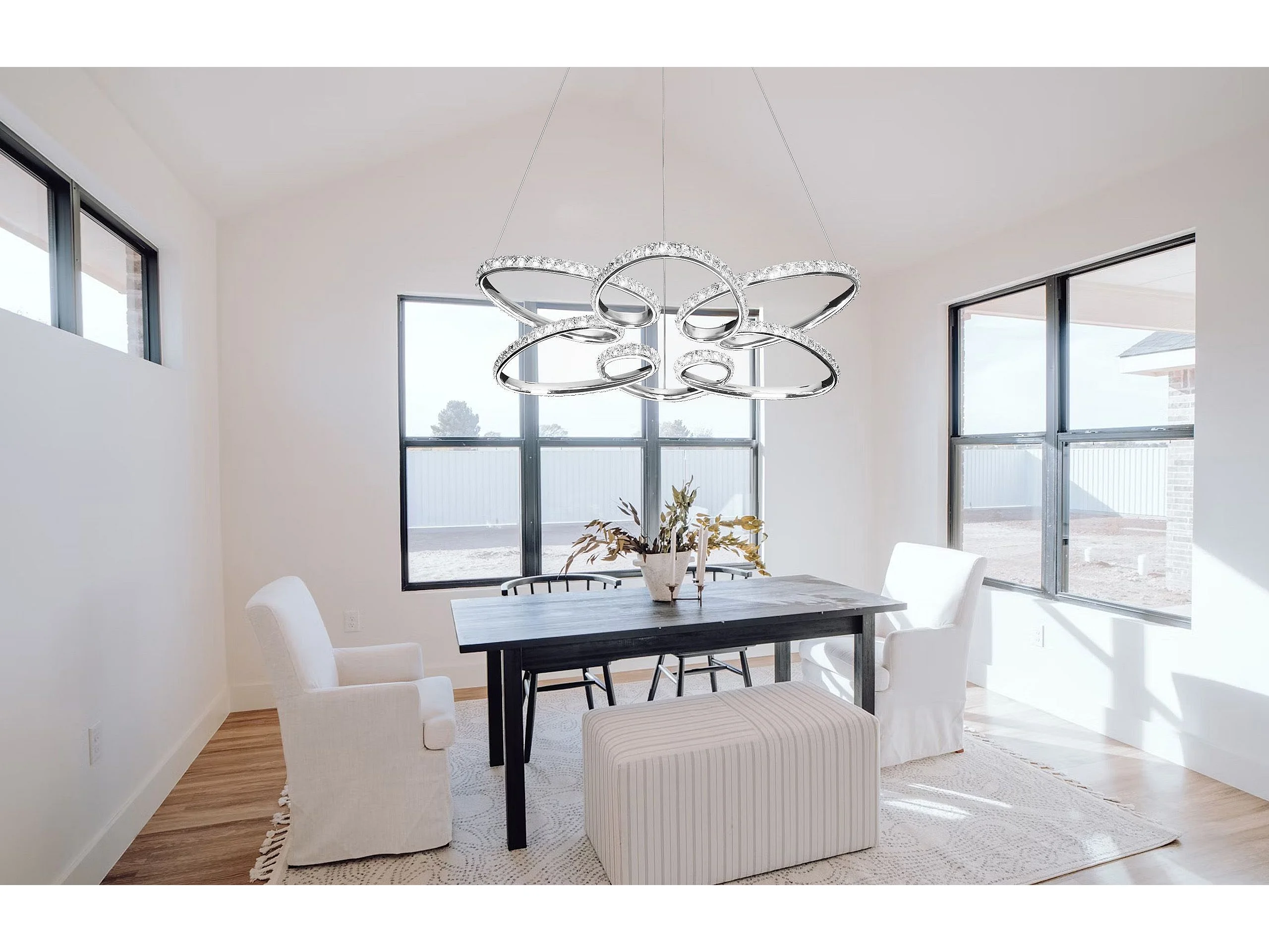 Lustre LED dimmable Iole S2 40W - Suspension moderne double anneau en titane, lumière chaude 3000K, 2000lm, design élégant