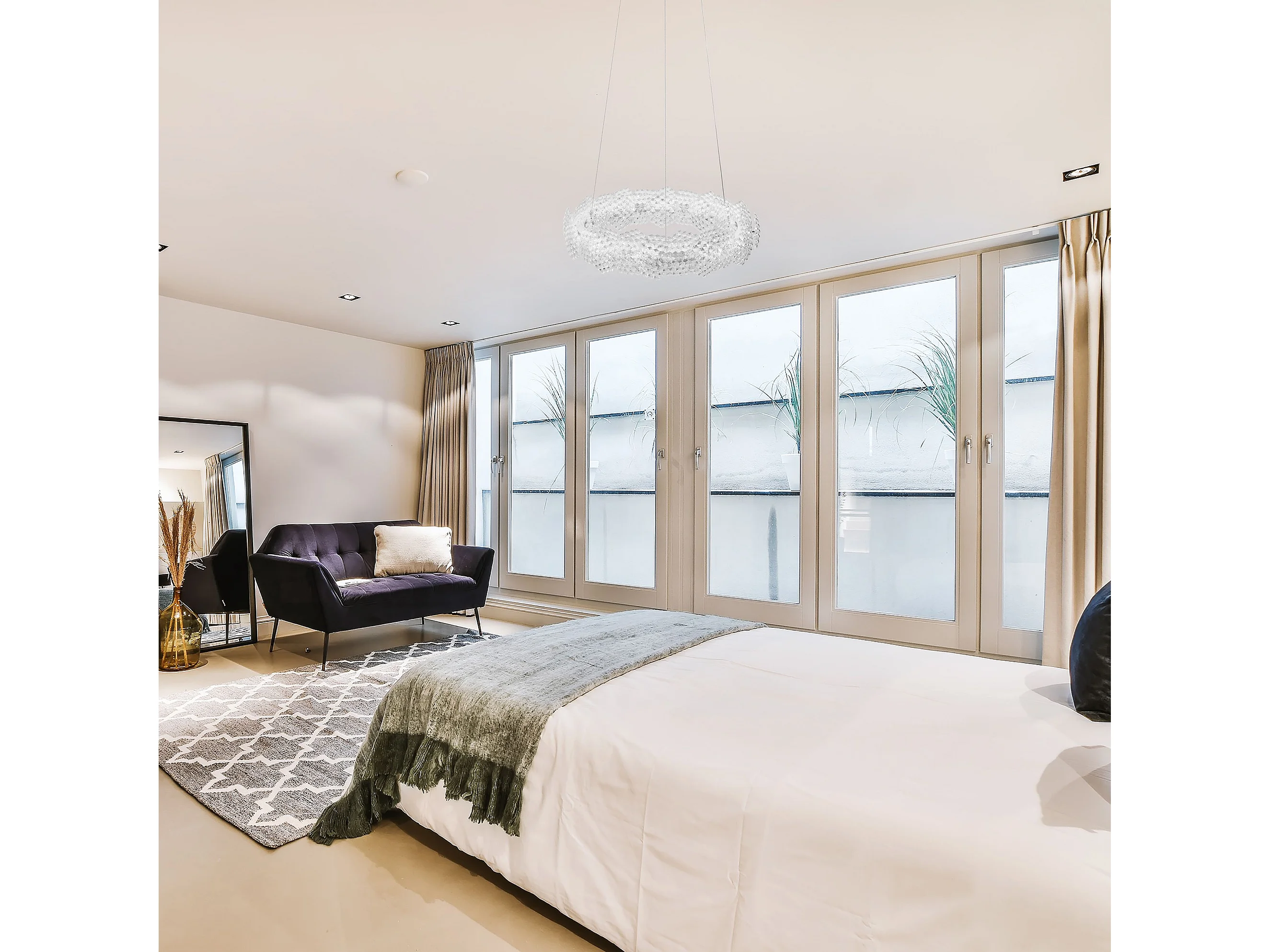 Lustre LED dimmable Iole S2 40W - Suspension moderne double anneau en titane, lumière chaude 3000K, 2000lm, design élégant
