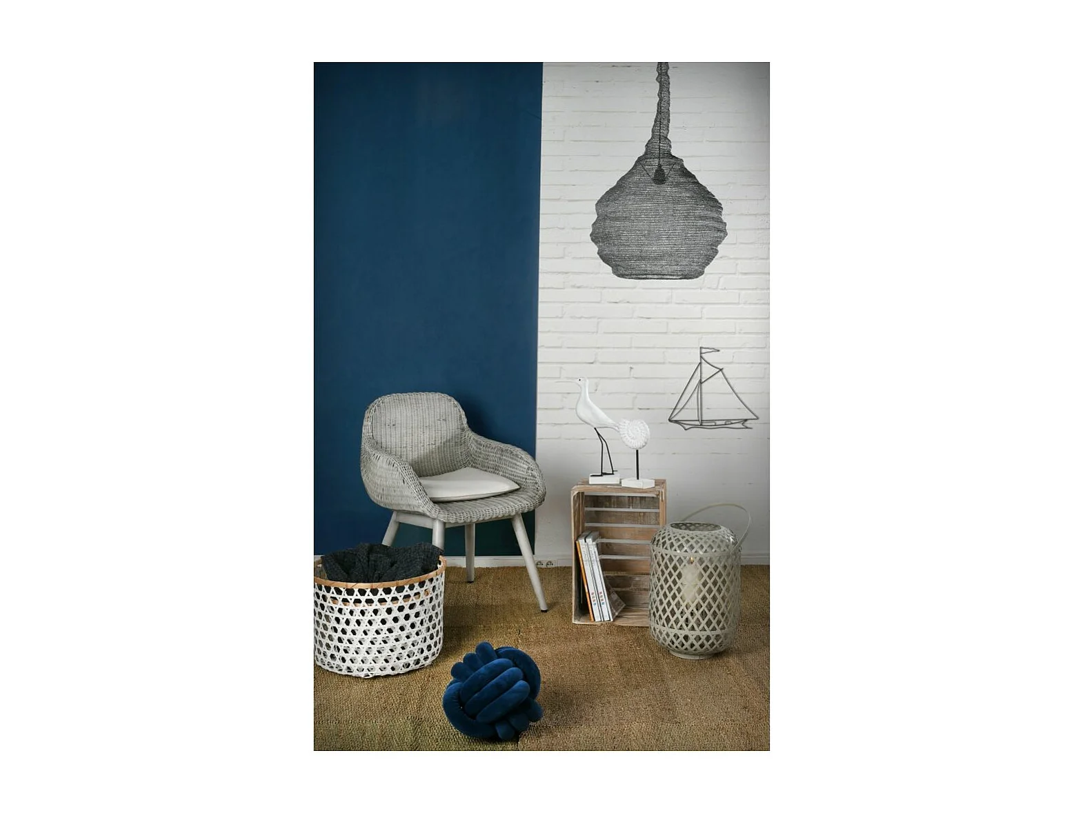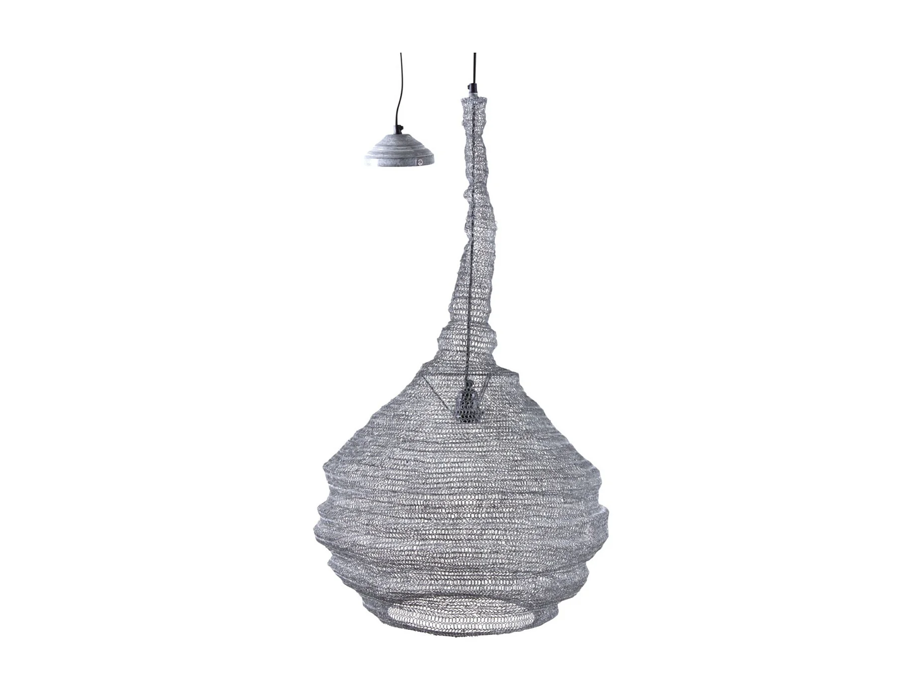 Lampe suspension métal gris blanchi filet de pêche Diamètre 47cm