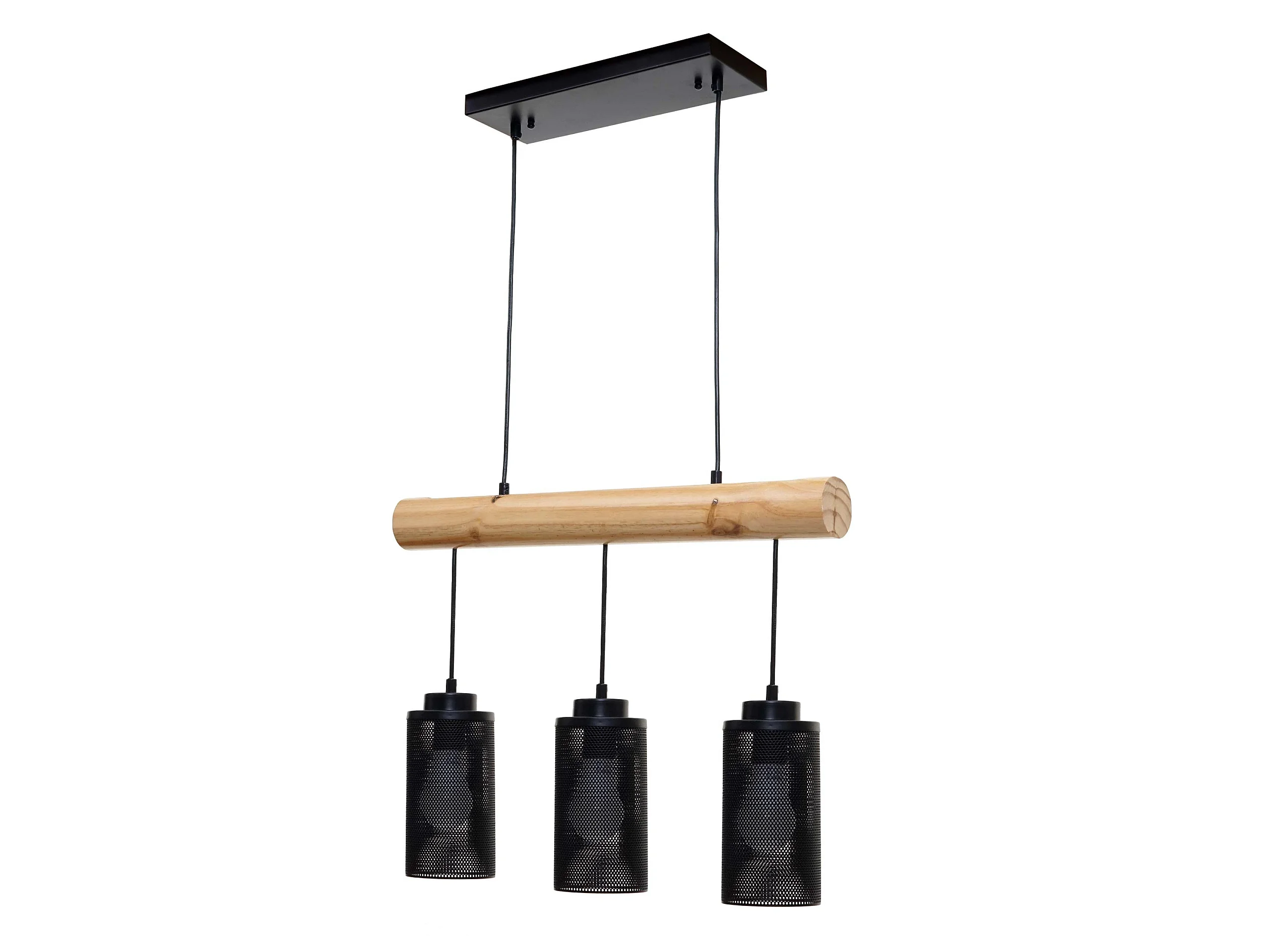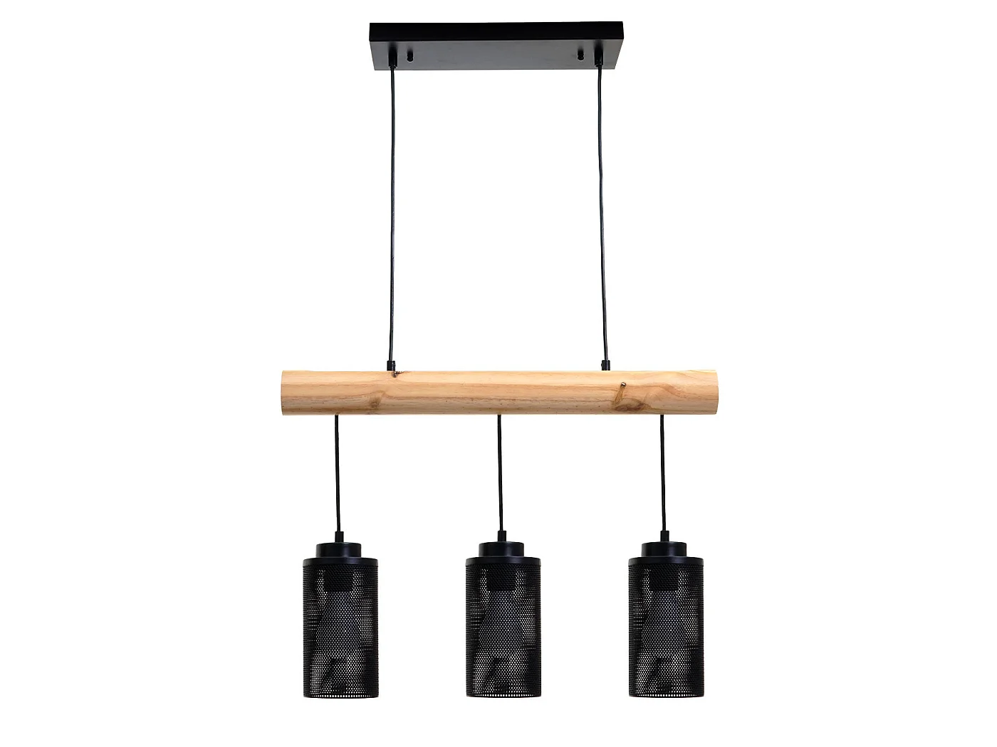 Lampe suspension suspendue design industriel en bois massif noir 3 abat-jours 04_0003602