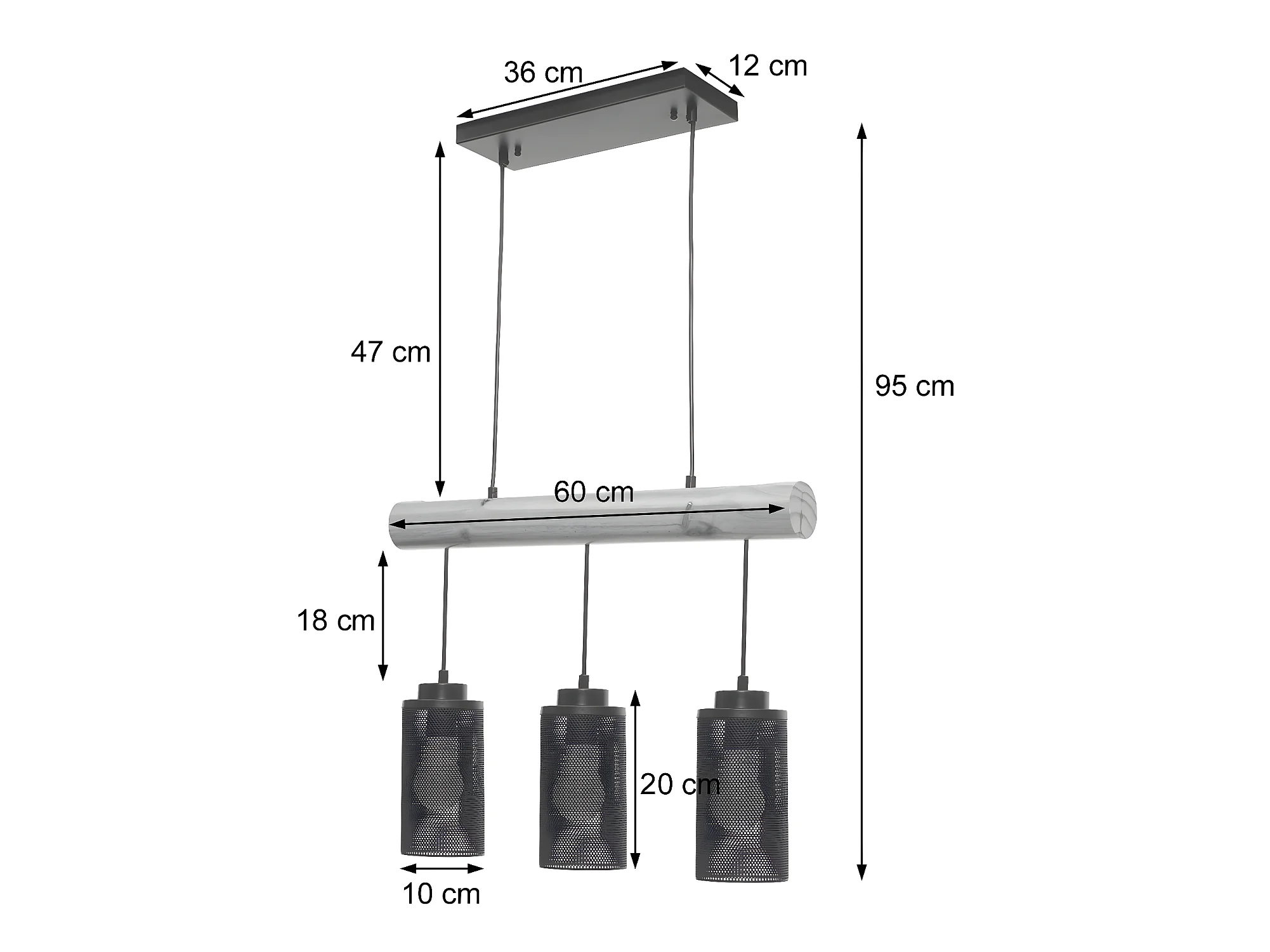 Lampe linéaire avec poulies modèle TRIGUERO avec 3 lumières FABRILAMP