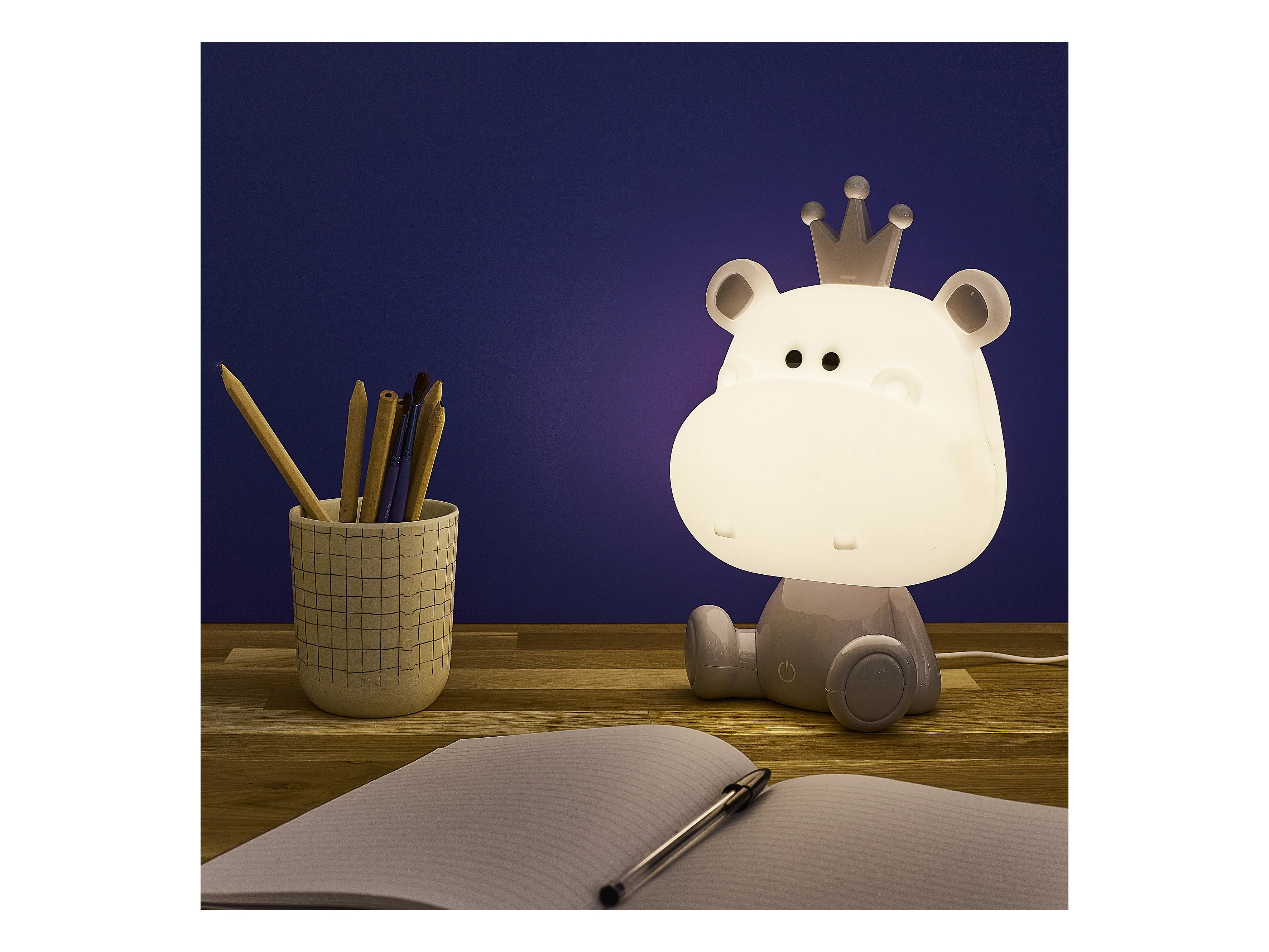 Lampe Veilleuse Hippopotame Blanc, Gris
