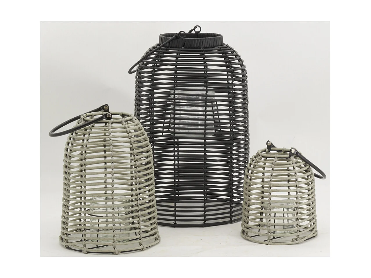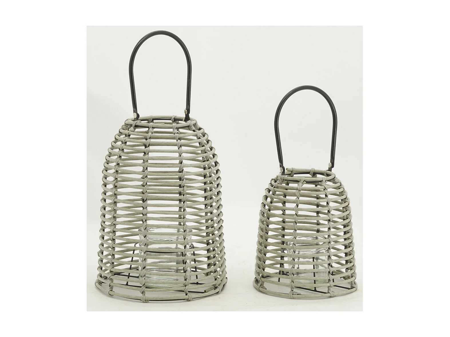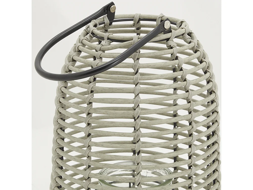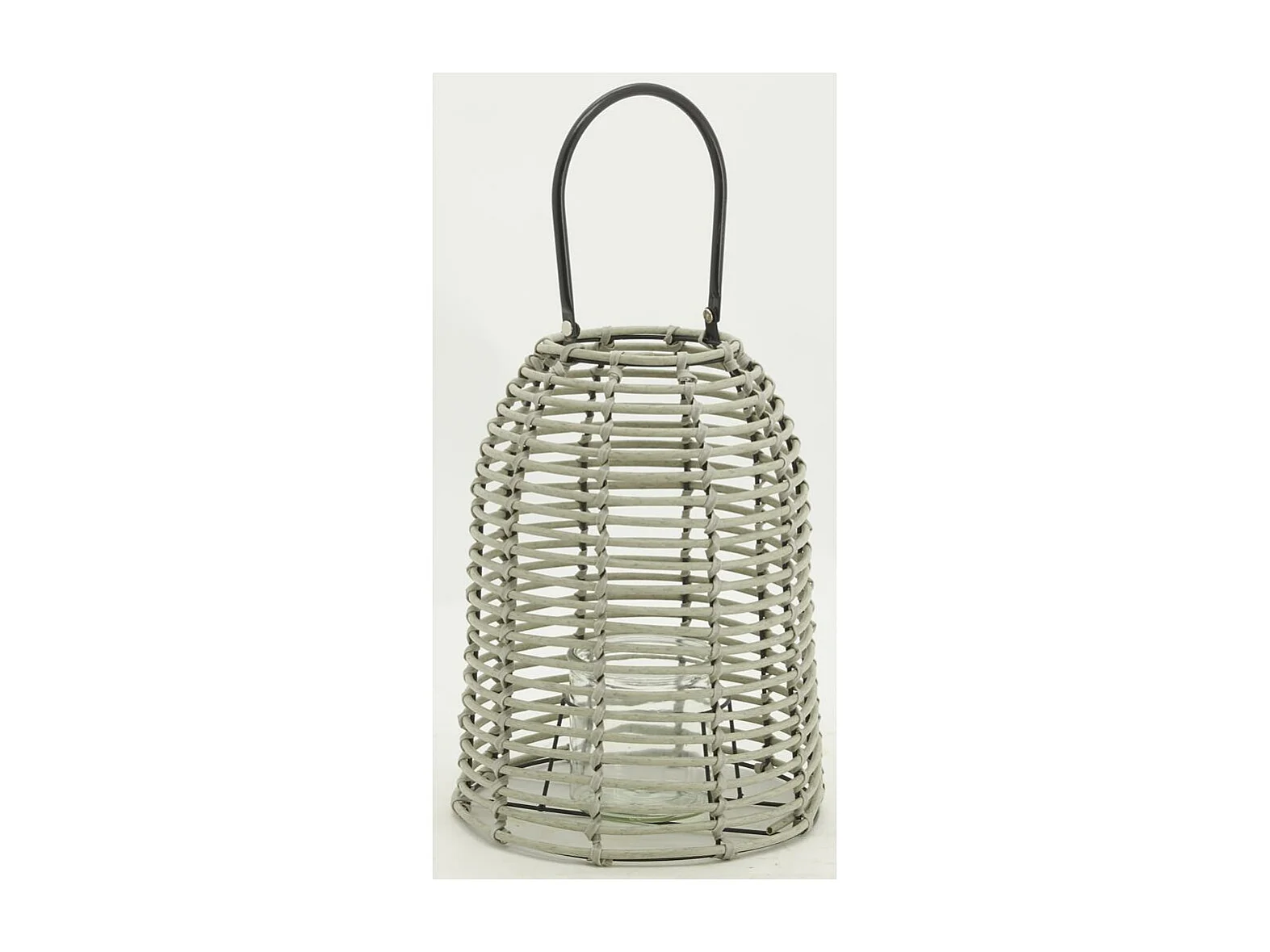 Lanterne goutte en osier gris et verre Hauteur 65 cm