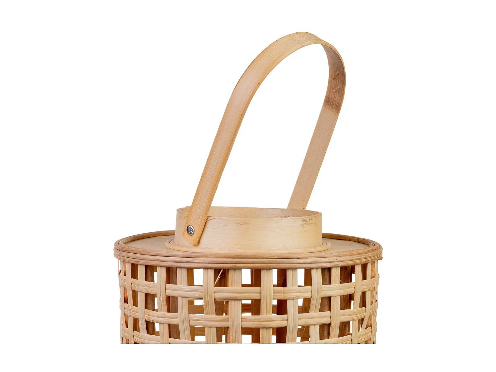 Lanterne en bambou et bois avec poignée en corde et bougie à piles