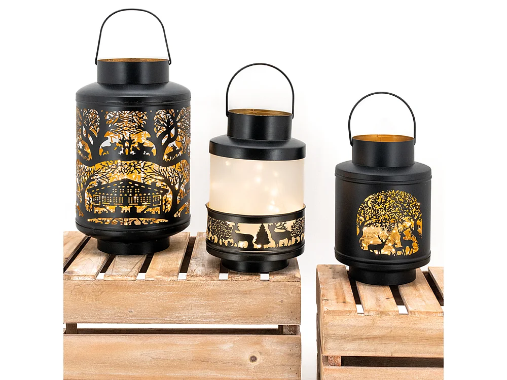 Lanterne Cerfs en verre et métal