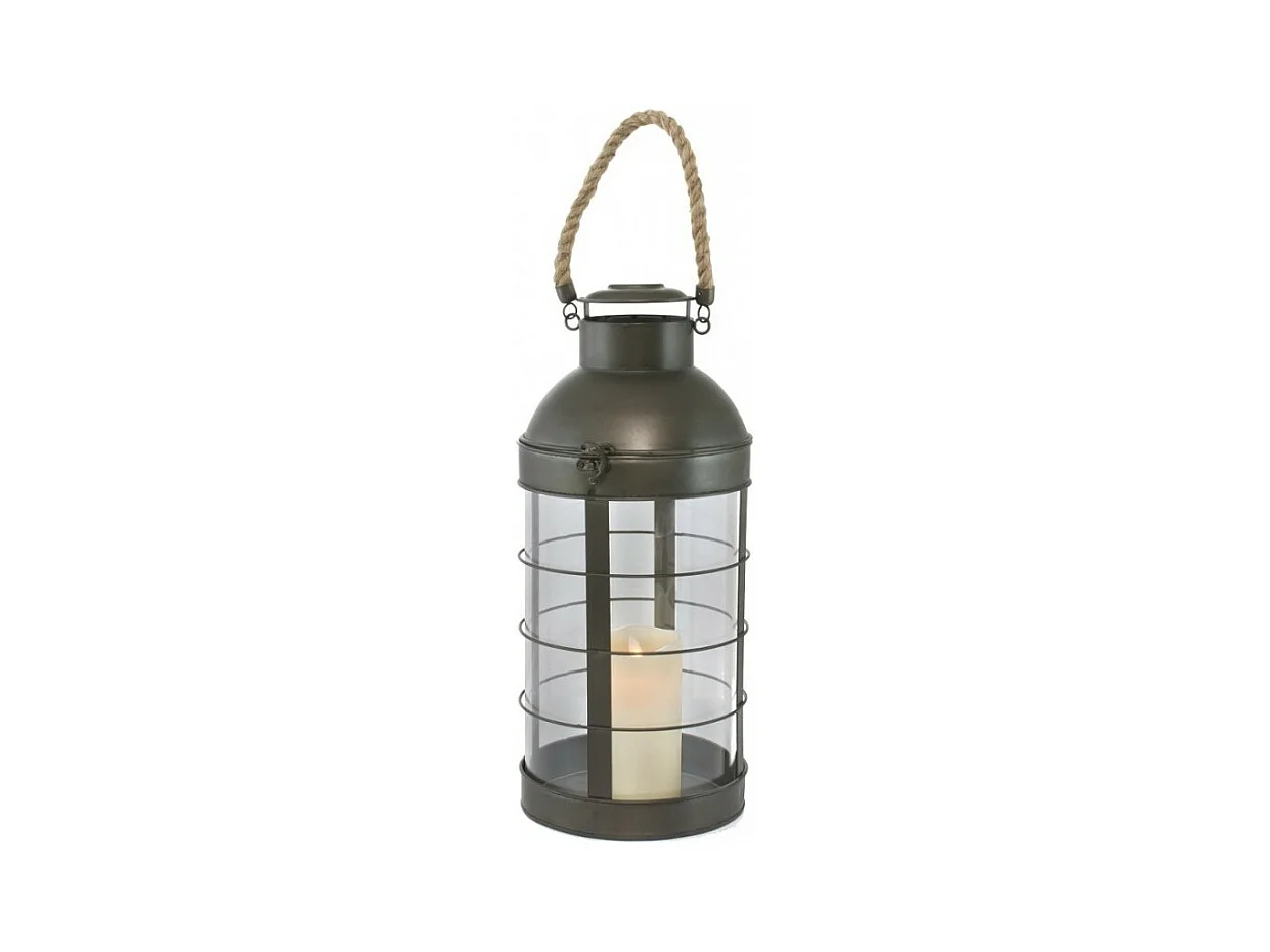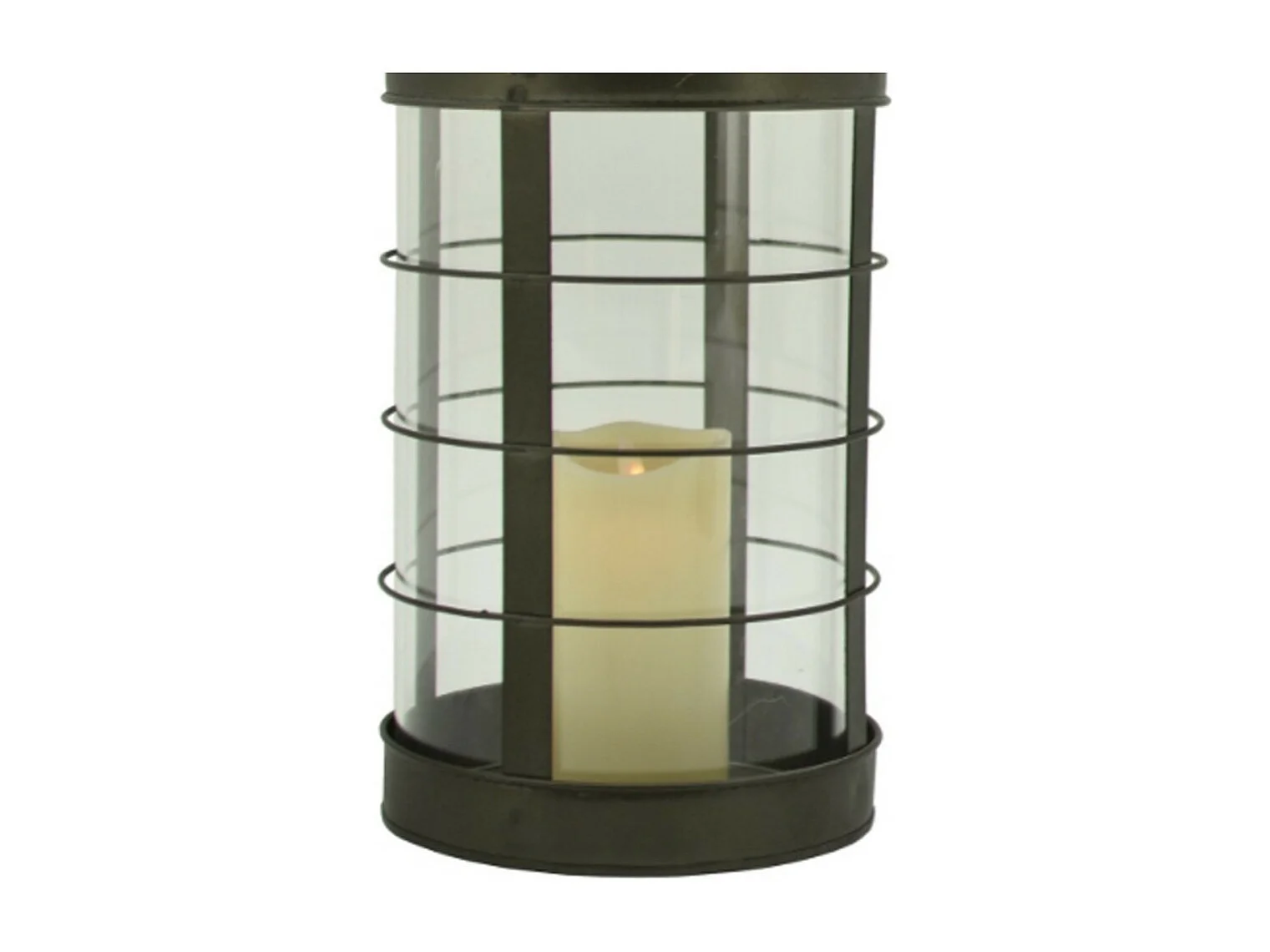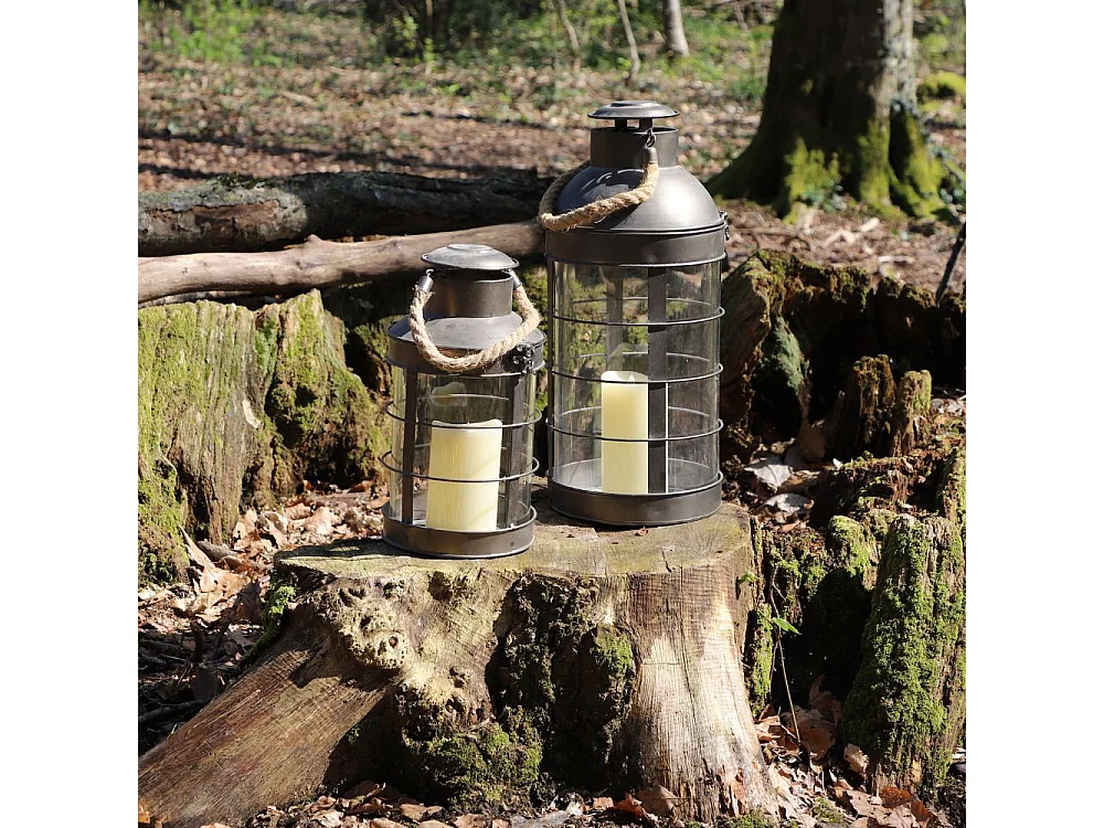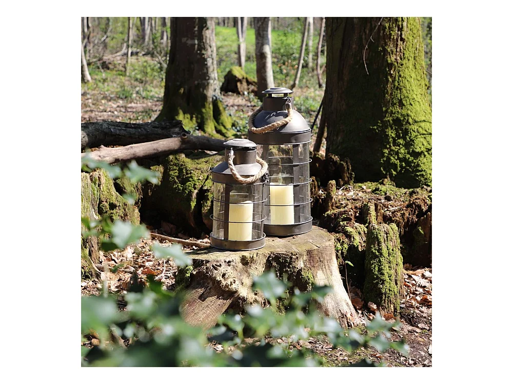 Lanterne extérieure jardin à poser bougie industrielle métal gris 46 cm