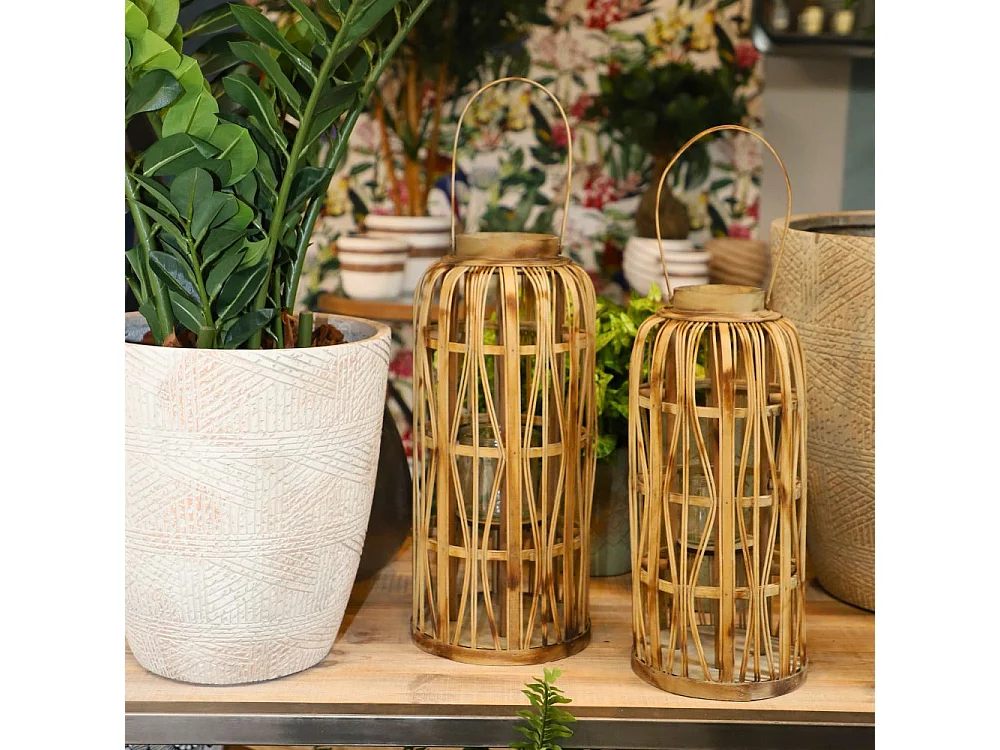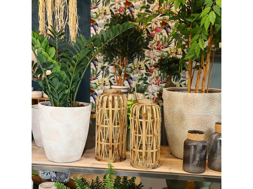 Lanterne jardin extérieur à poser bougie ancienne rotin naturel 44cm
