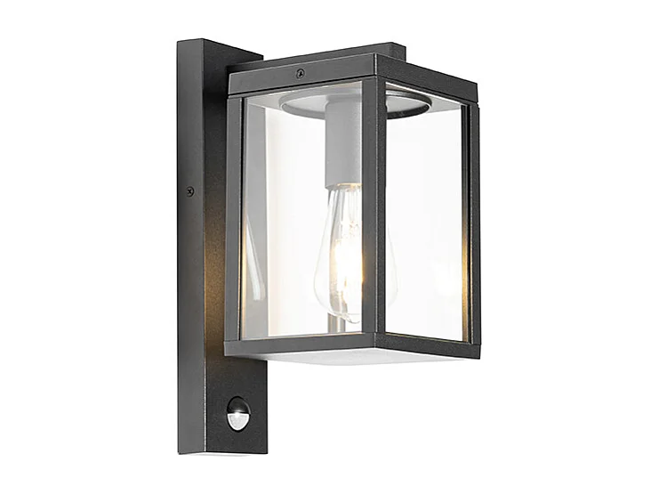 Lanterne murale d'extérieur noire avec détecteur de mouvement IP44 - Charlois