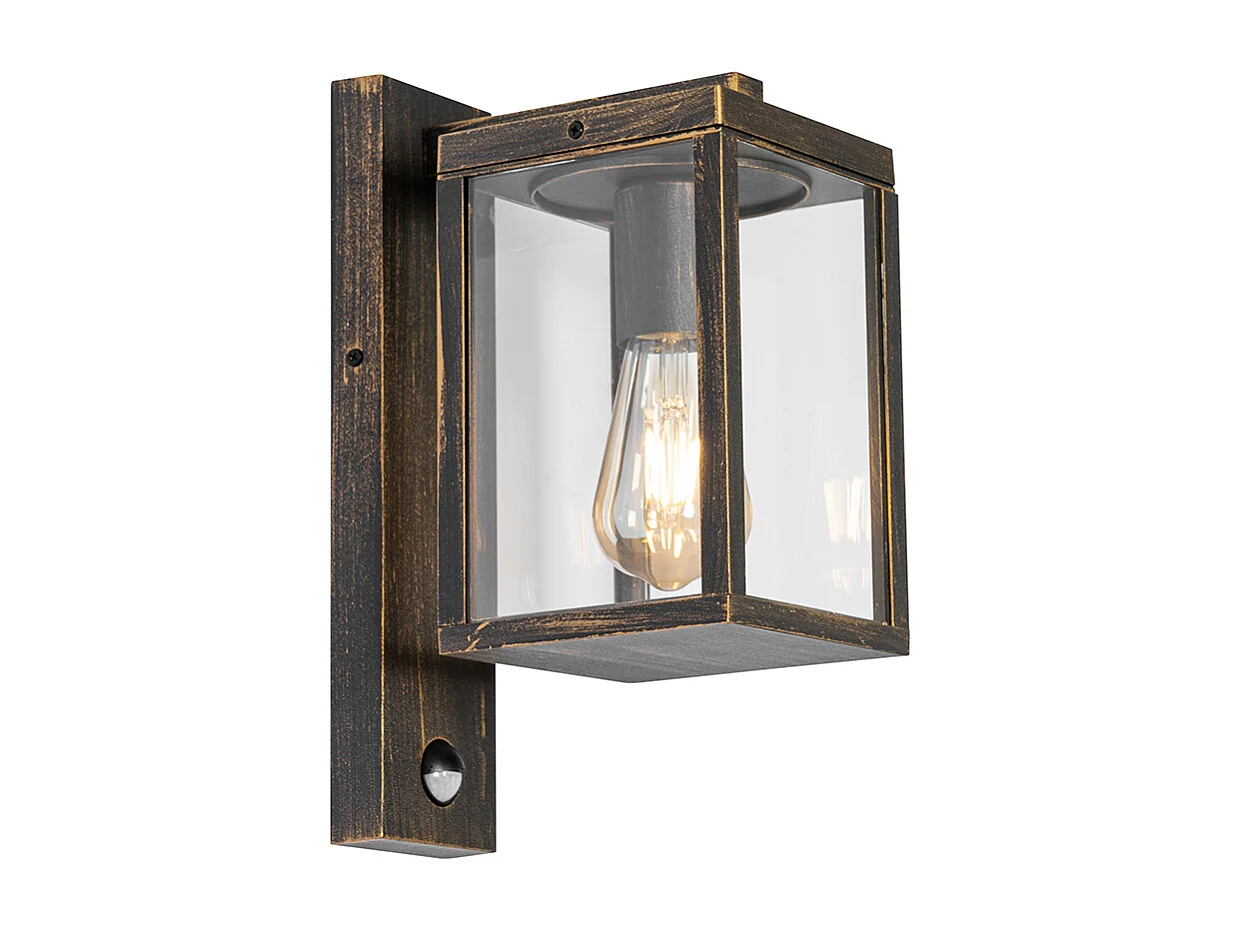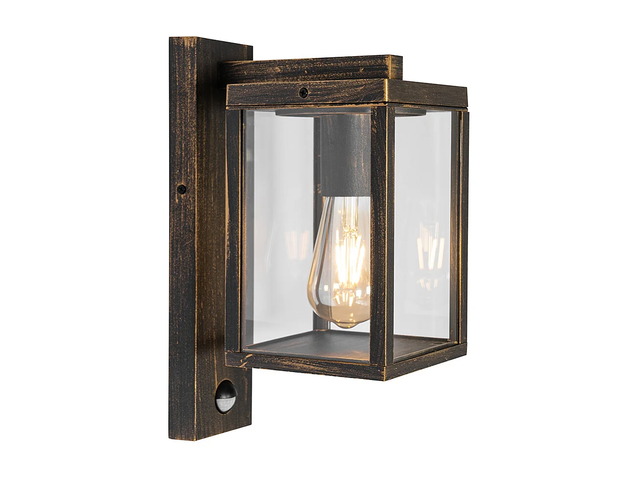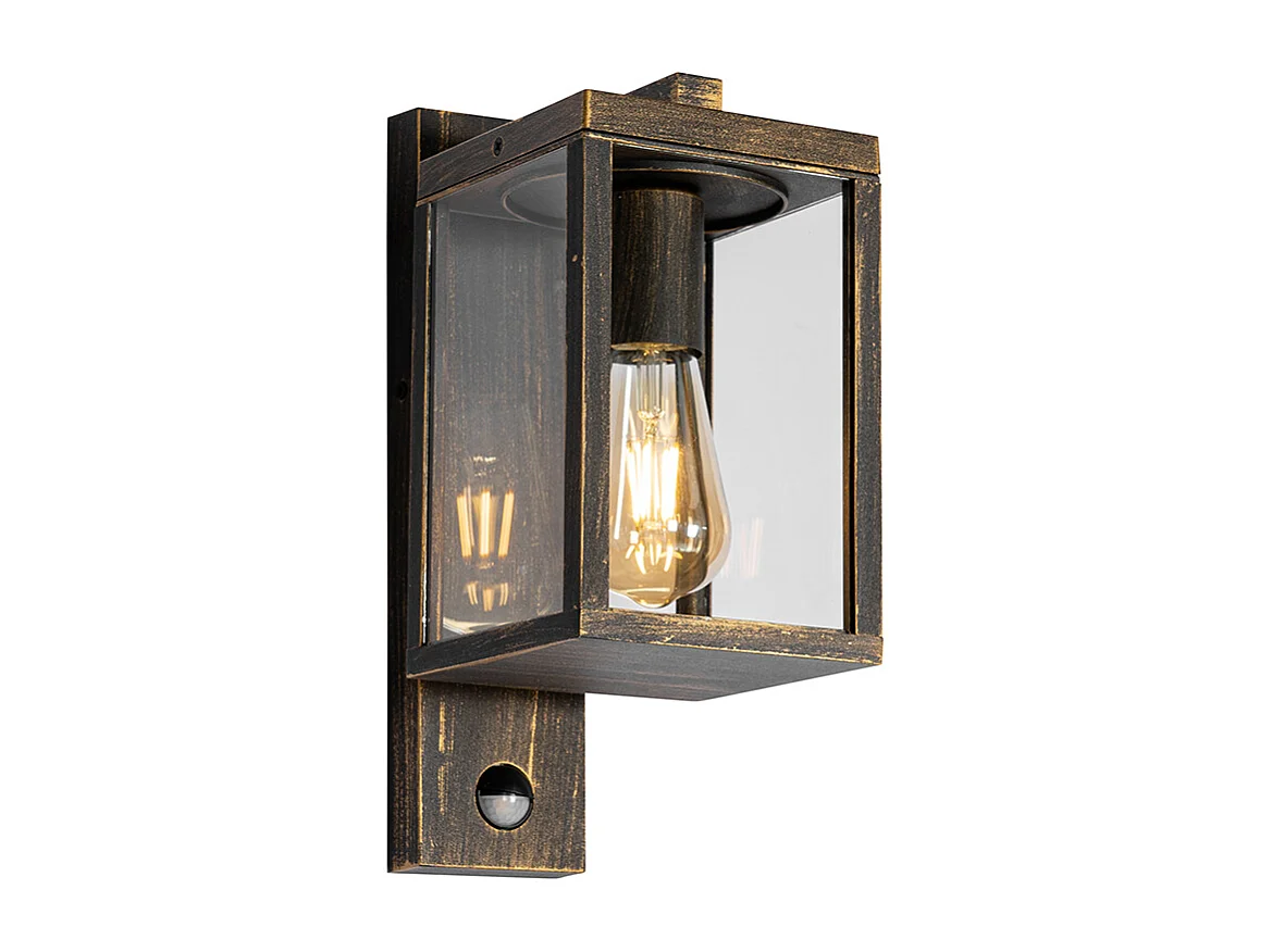 Lanterne murale d'extérieur or antique avec détecteur de mouvement IP44 - Charlois