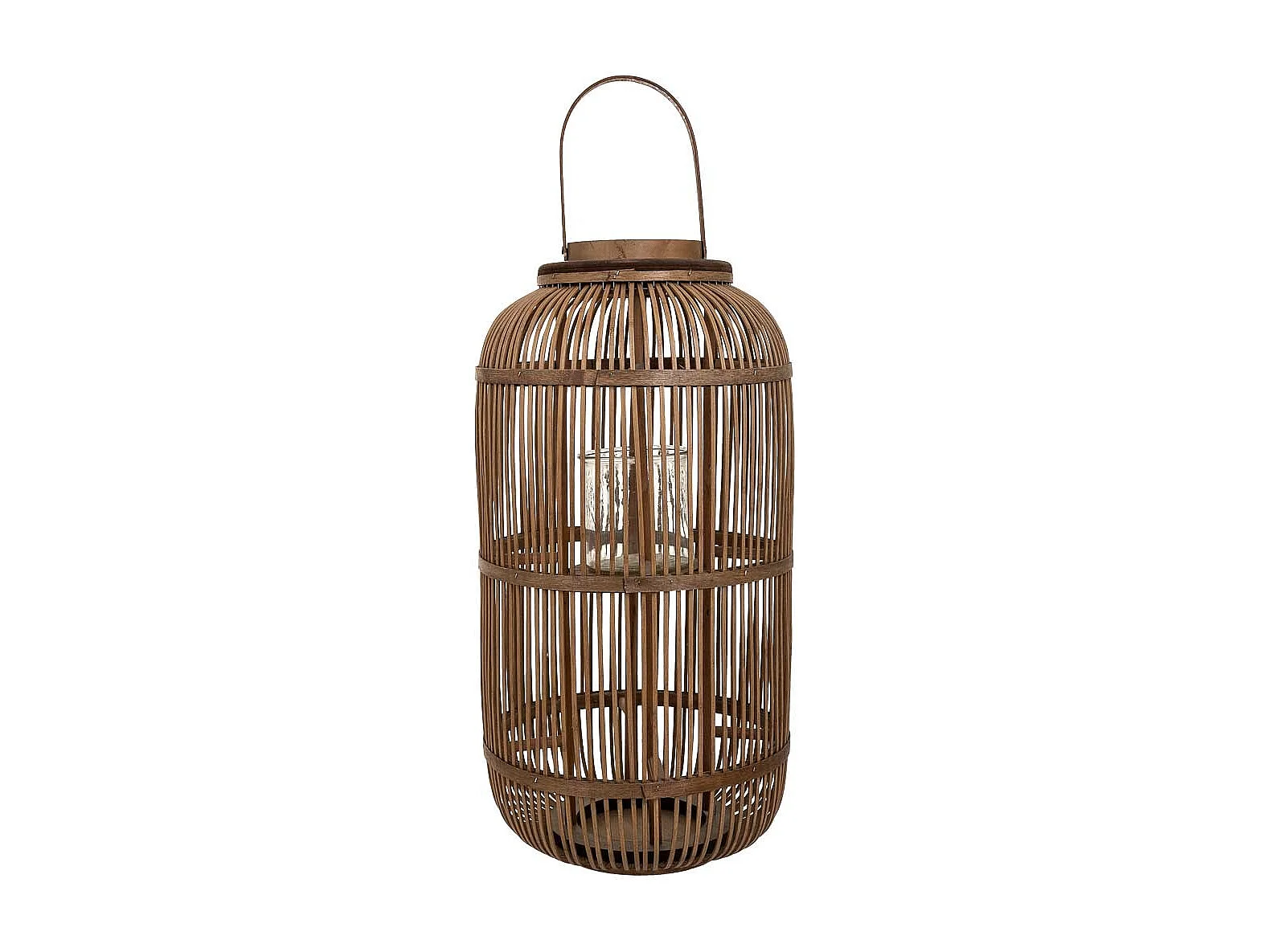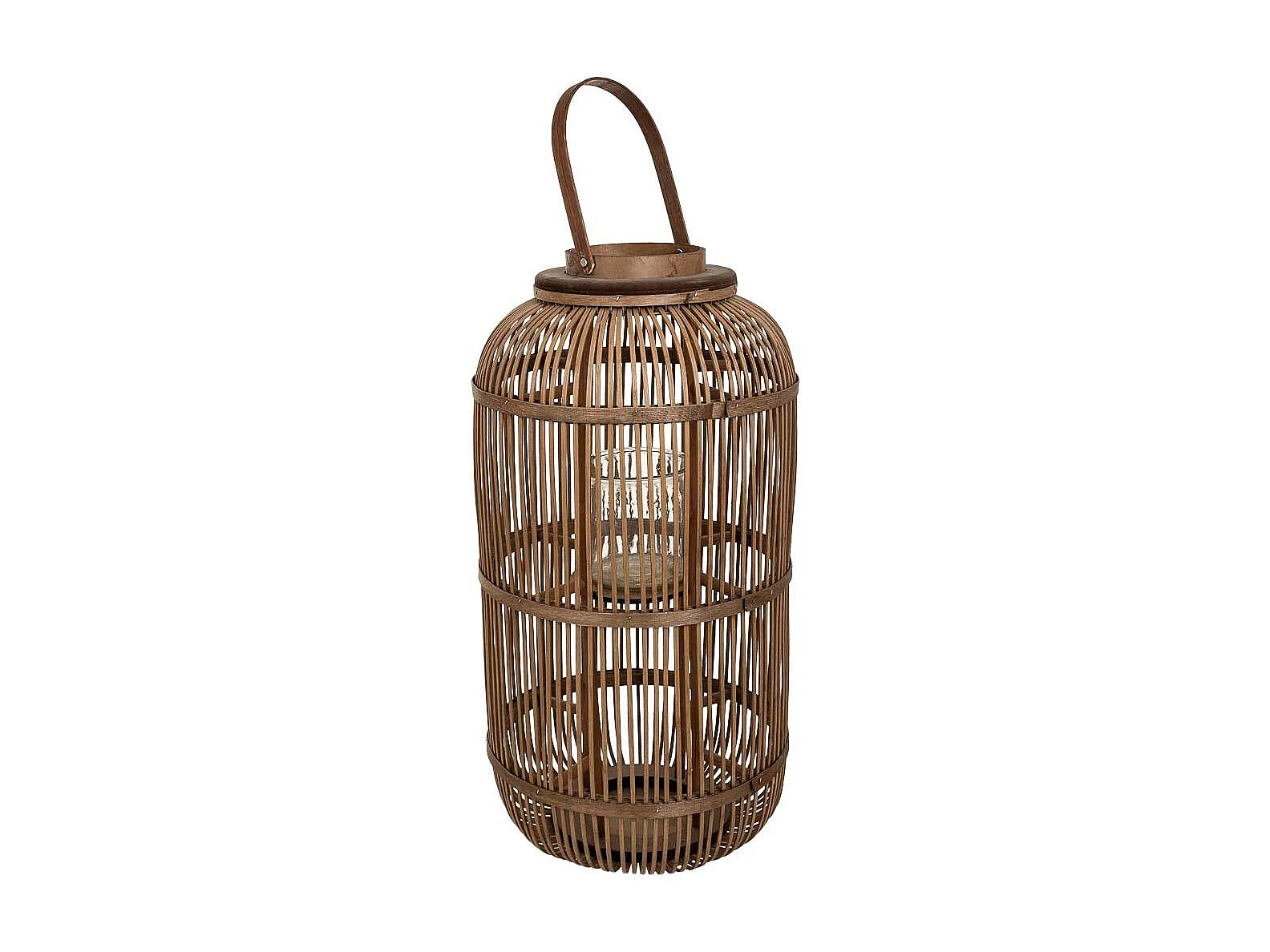 Lanterne photophore en bambou et rotin marron d36x31/64h