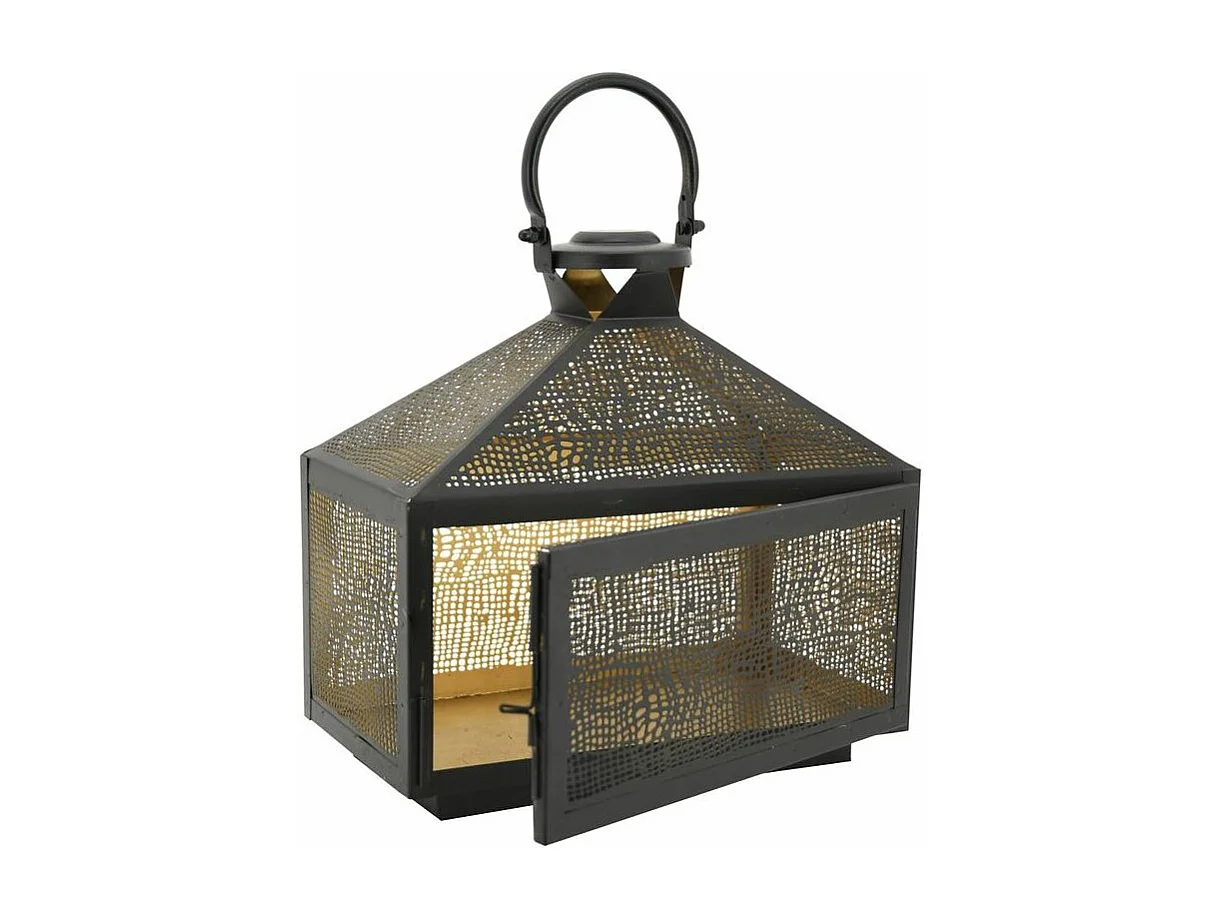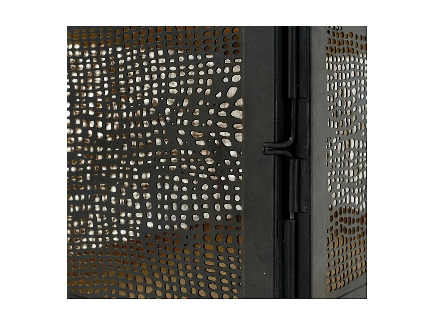 Lanternes en métal laqué noir carrée motif feuilles (Lot de 2)