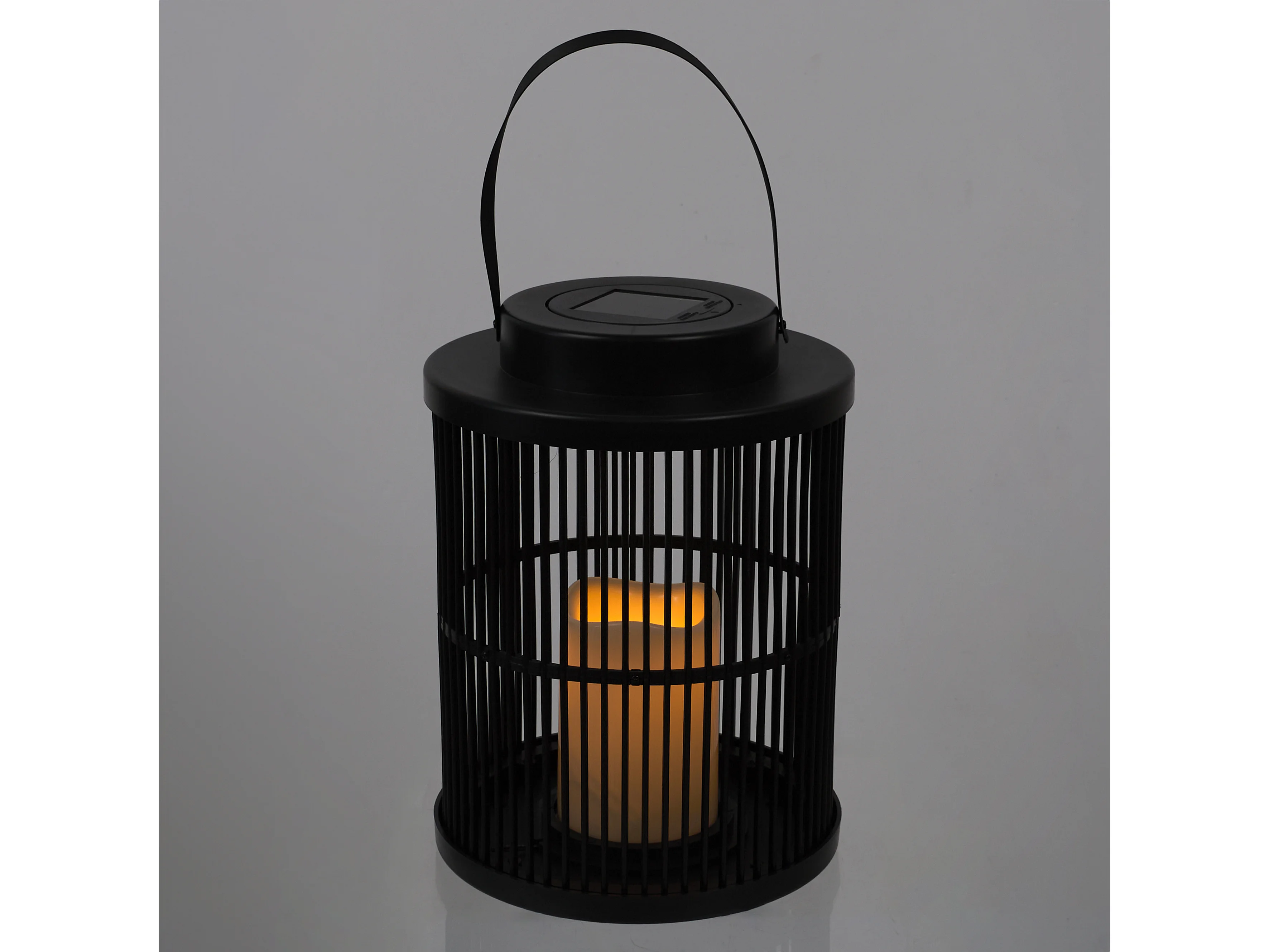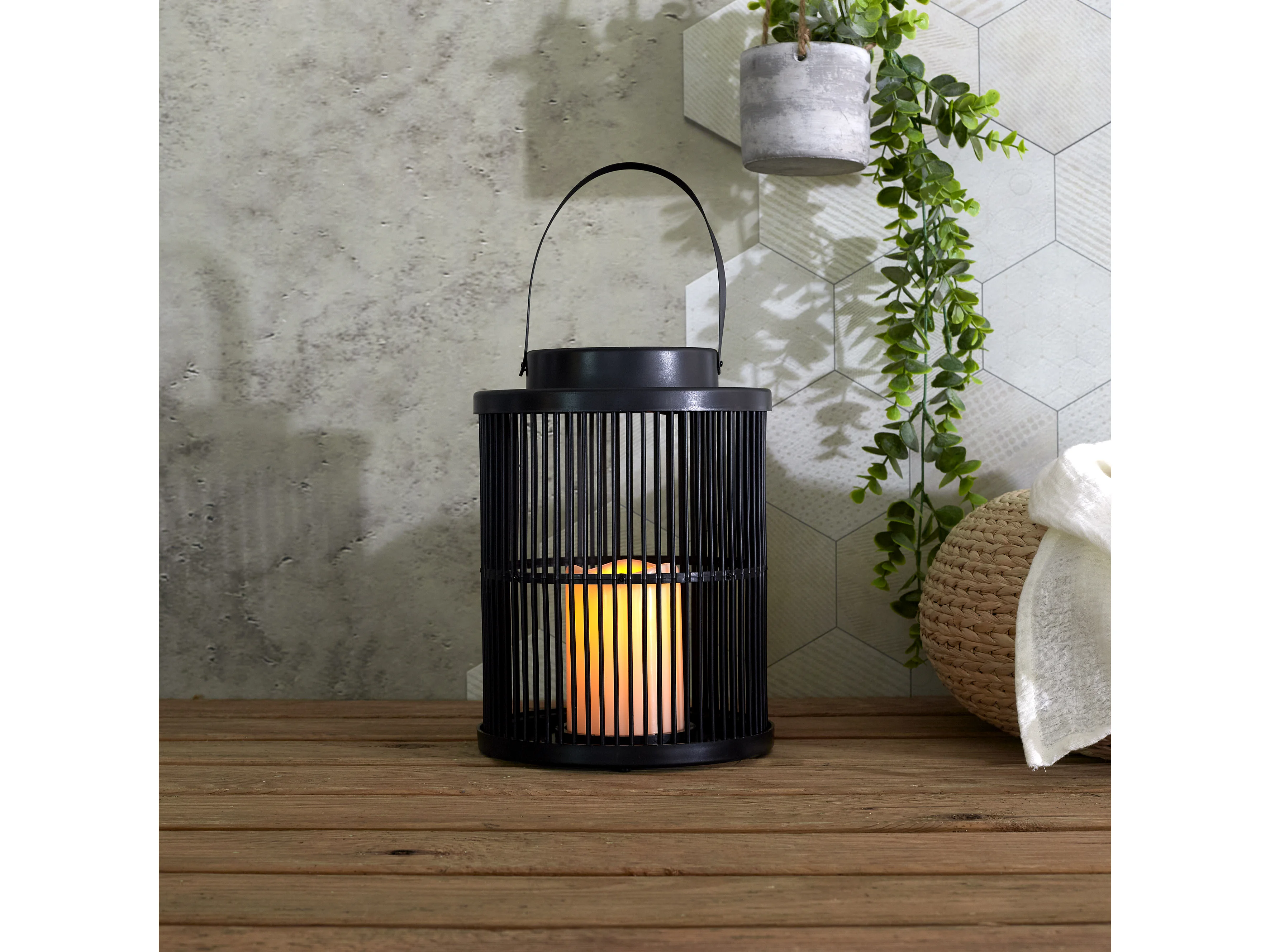 Lanterne solaire led effet bougie, en polypropylène noir avec anse (H25 cm)