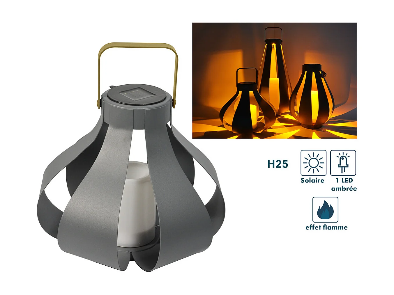 Lanterne solaire Drop 28 cm Topaze - Gris foncé