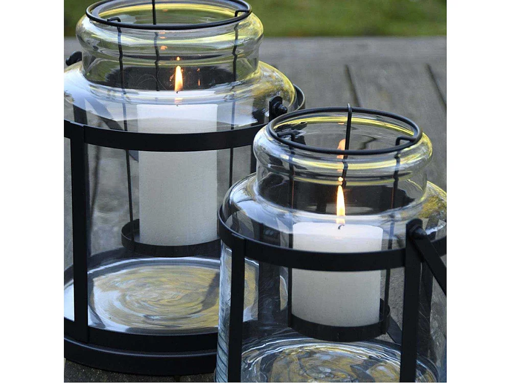 Lanterne tempête en métal et verre 21.8 x 21 x 21.9 cm