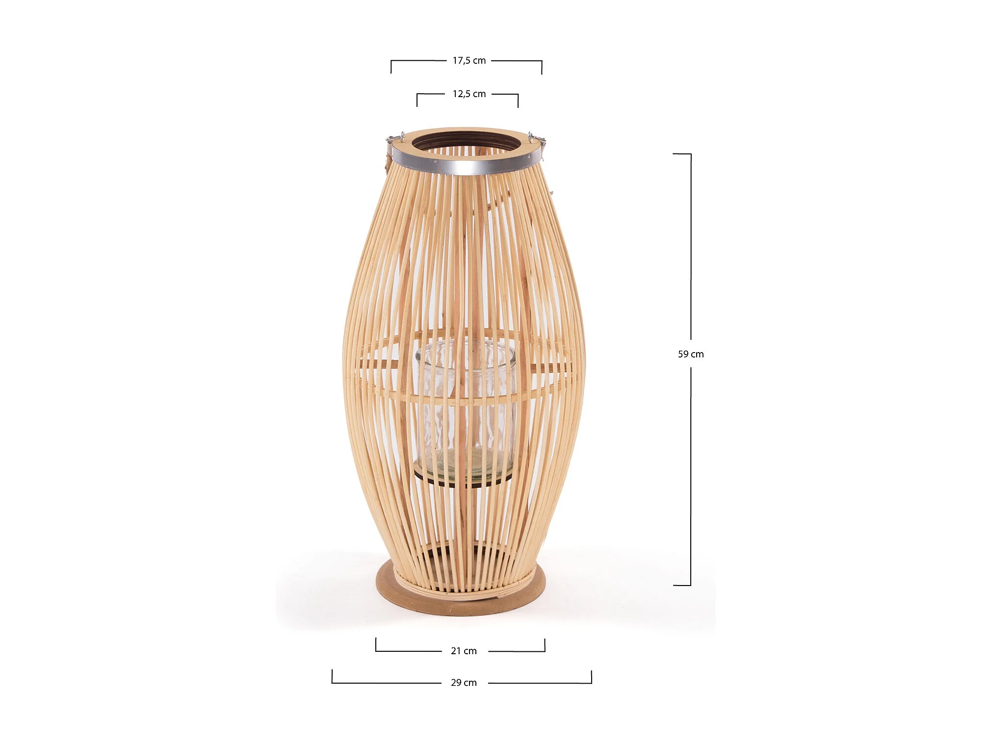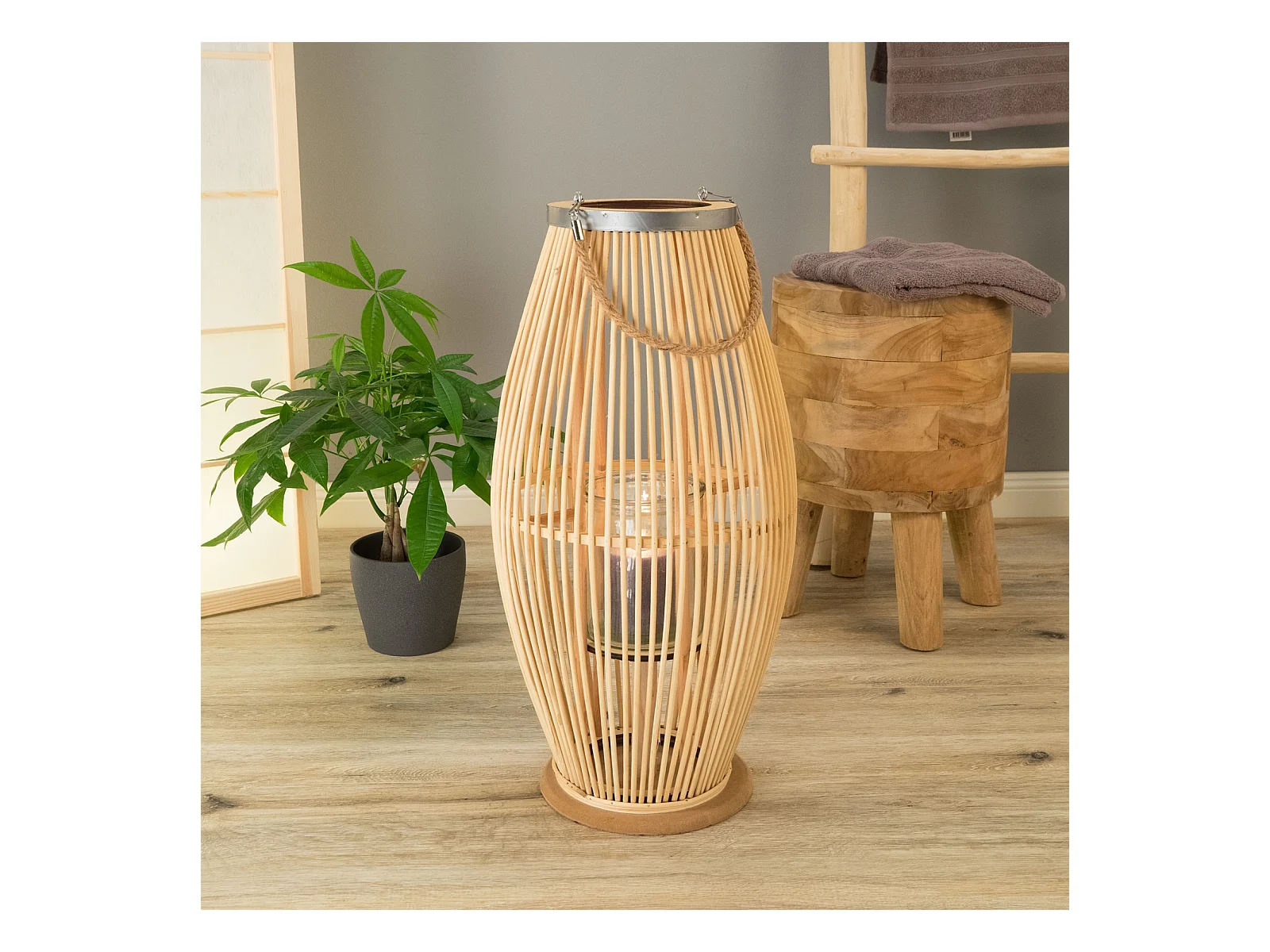 LANTERNE Iva | Couleurs naturelles | avec insert en verre | chandelier, lampadaire, lampe en bambou, lanterne, porte-bougie, luminaire.
