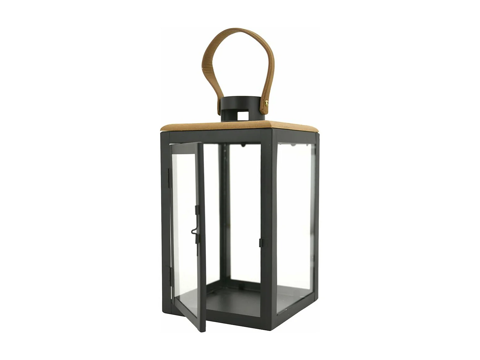 Lanterne jardin extérieur à poser bougie ancienne métal noir 22x28cm