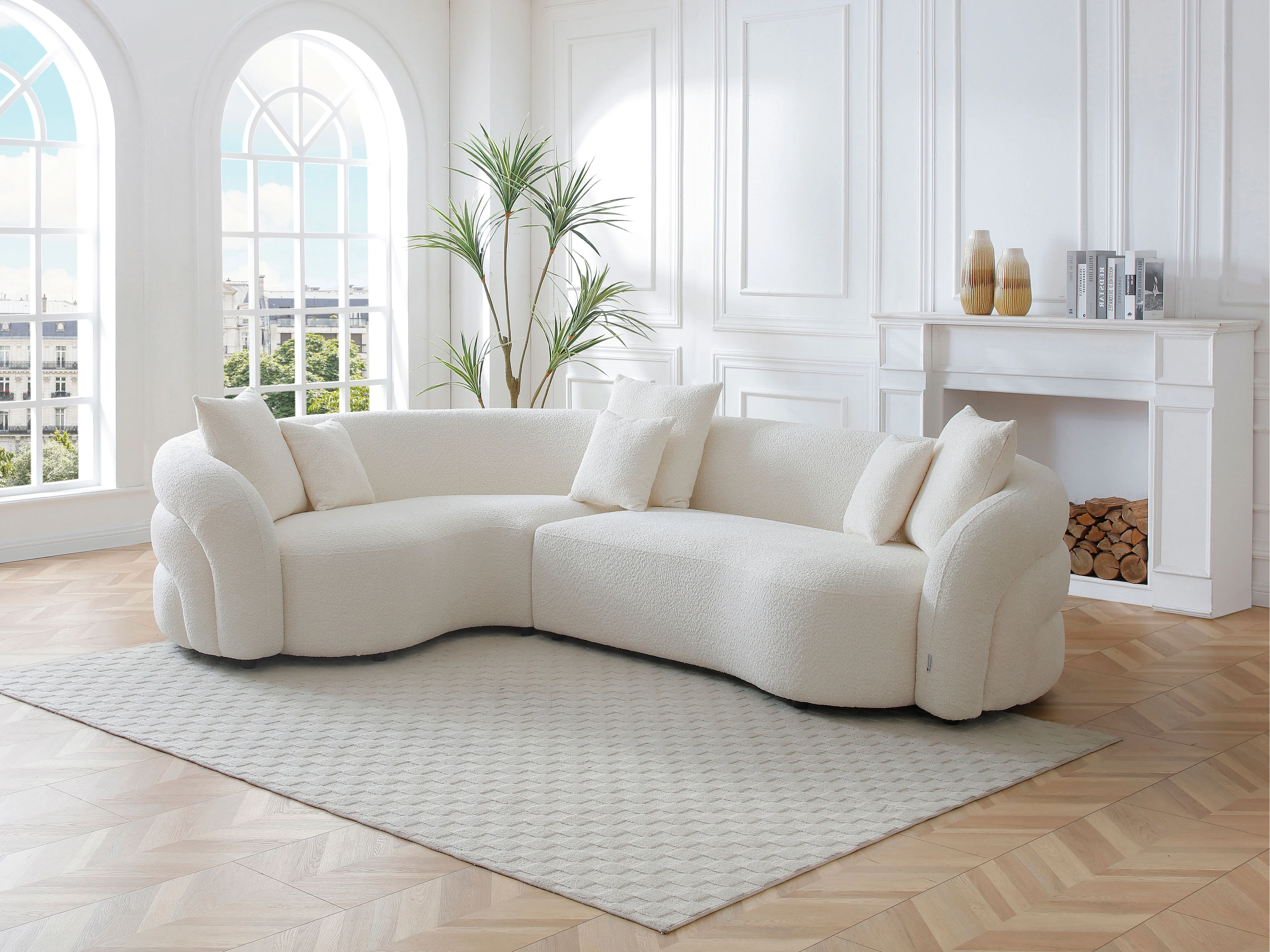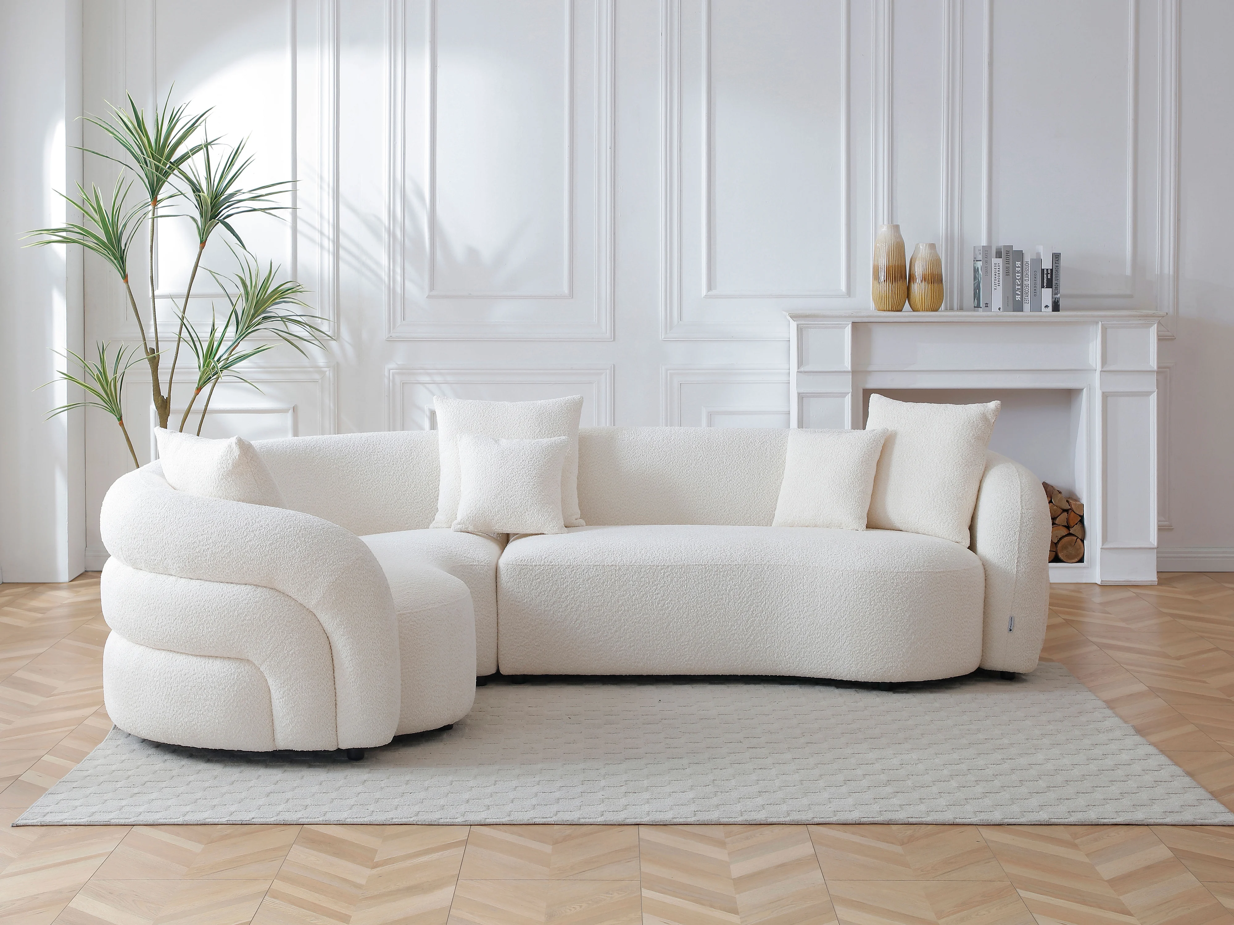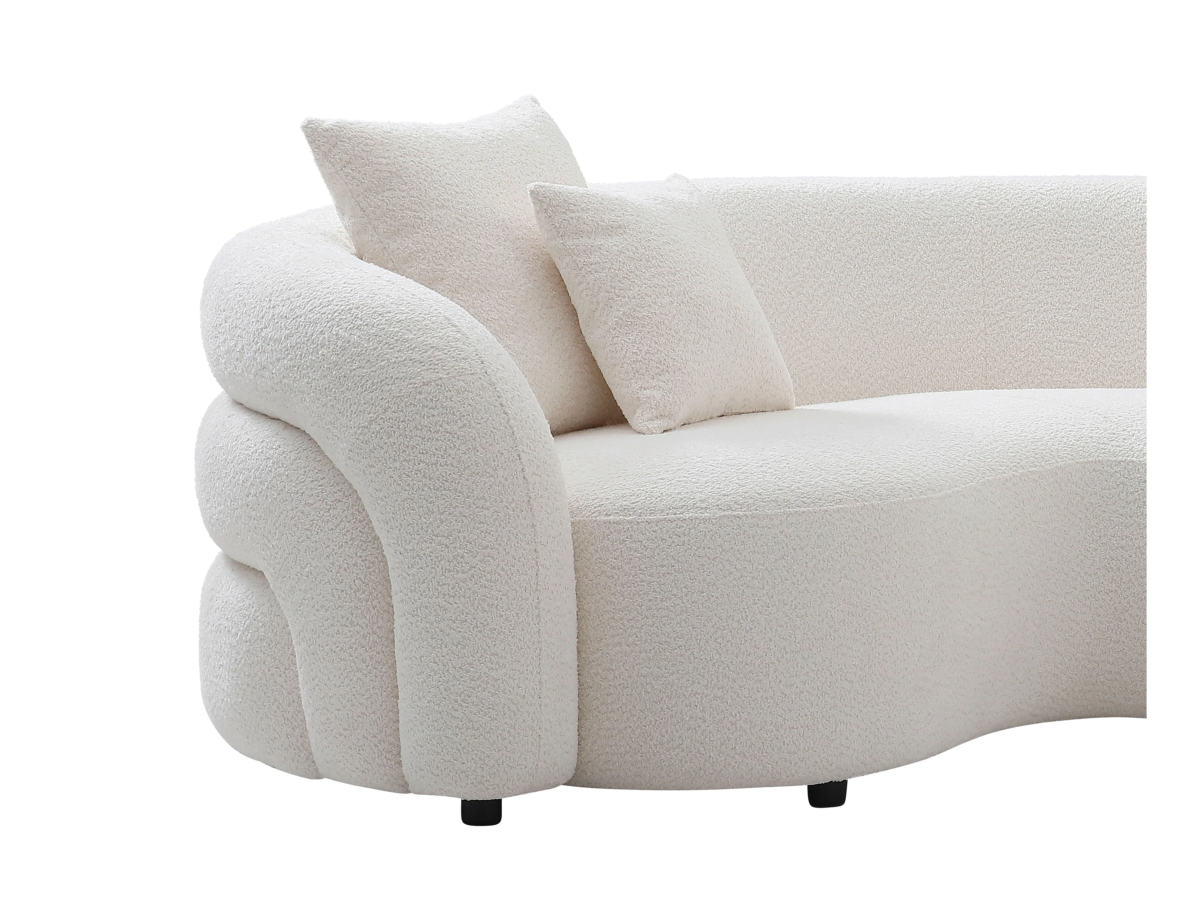 • Un toucher réconfortant : Le tissu bouclette évoque chaleur et cocooning dans un esprit contemporain.