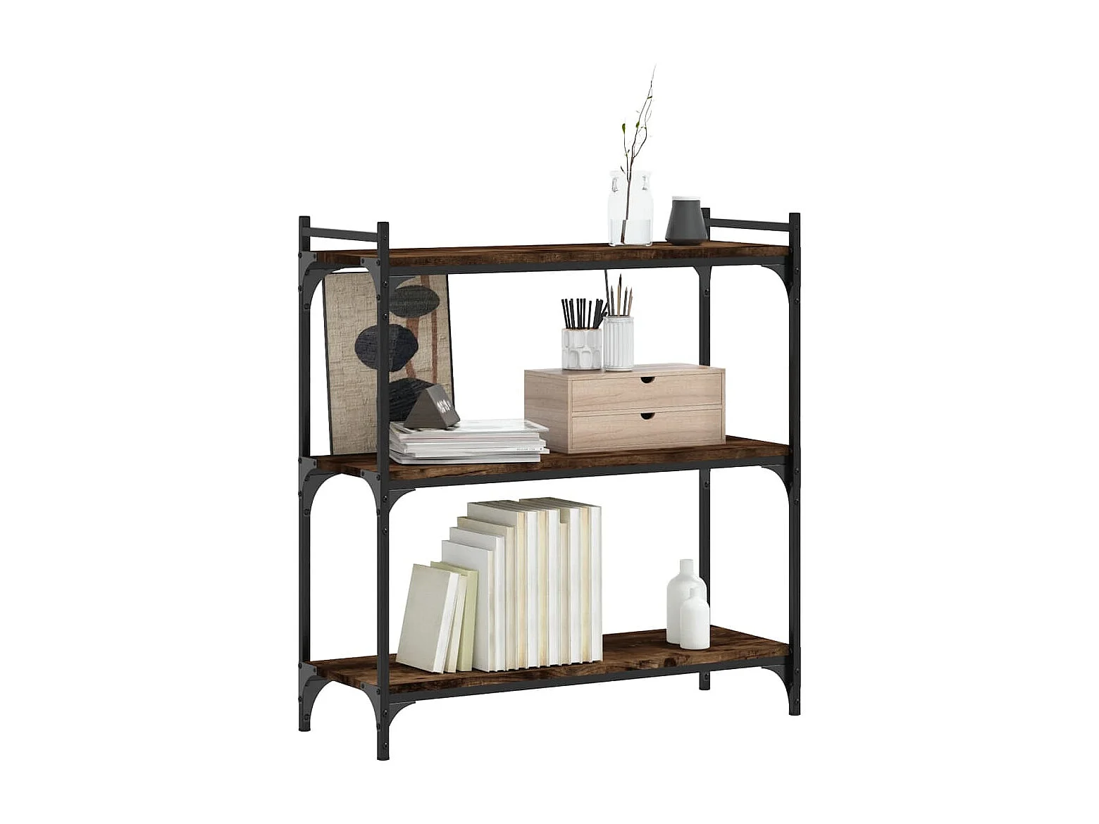 Lars Bibliothèque 3 niveaux chêne fumé 80x30x86 cm bois d'ingénierie