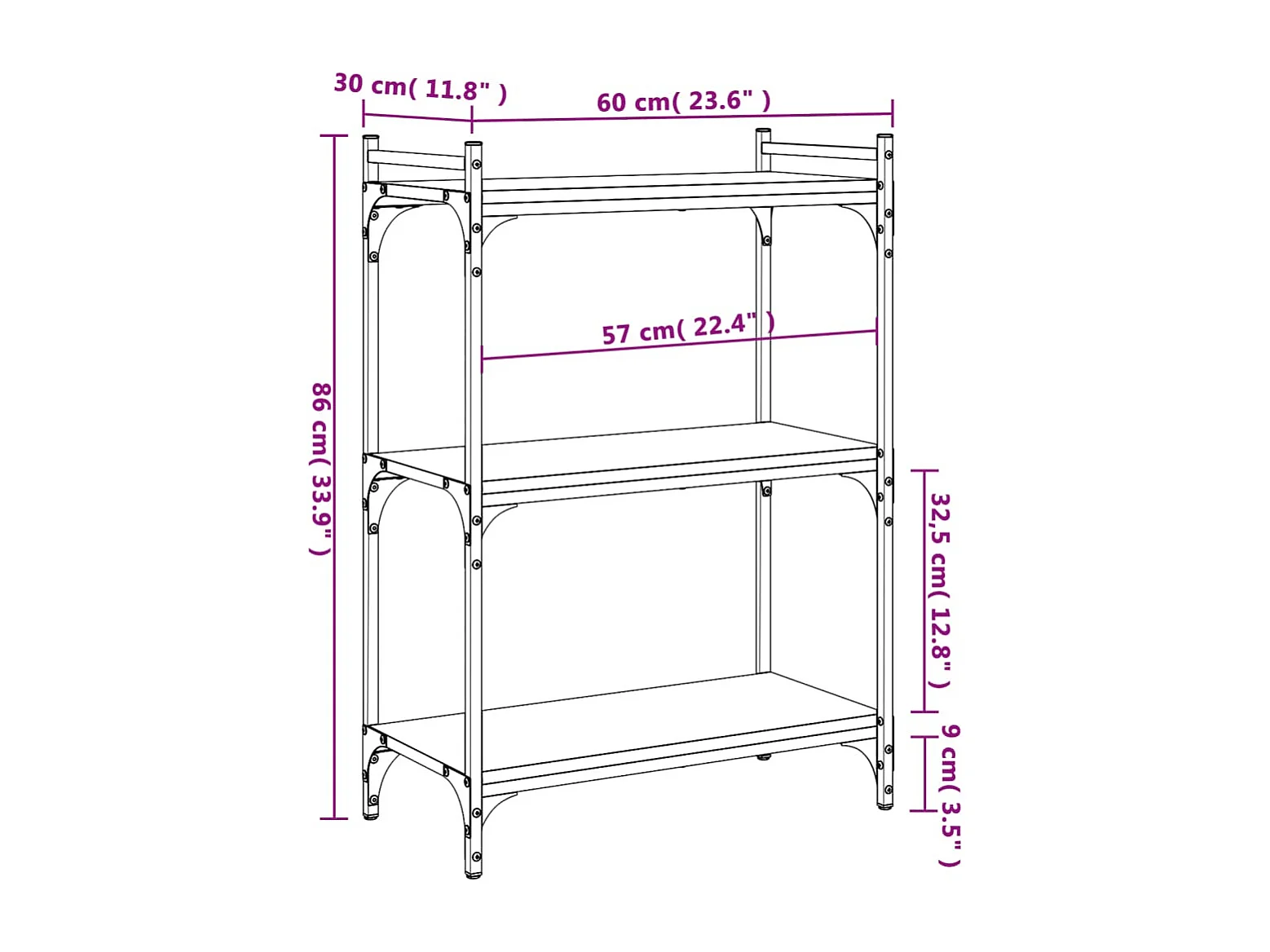 Lars Bibliothèque à 3 niveaux noir 60x30x86 cm bois d'ingénierie