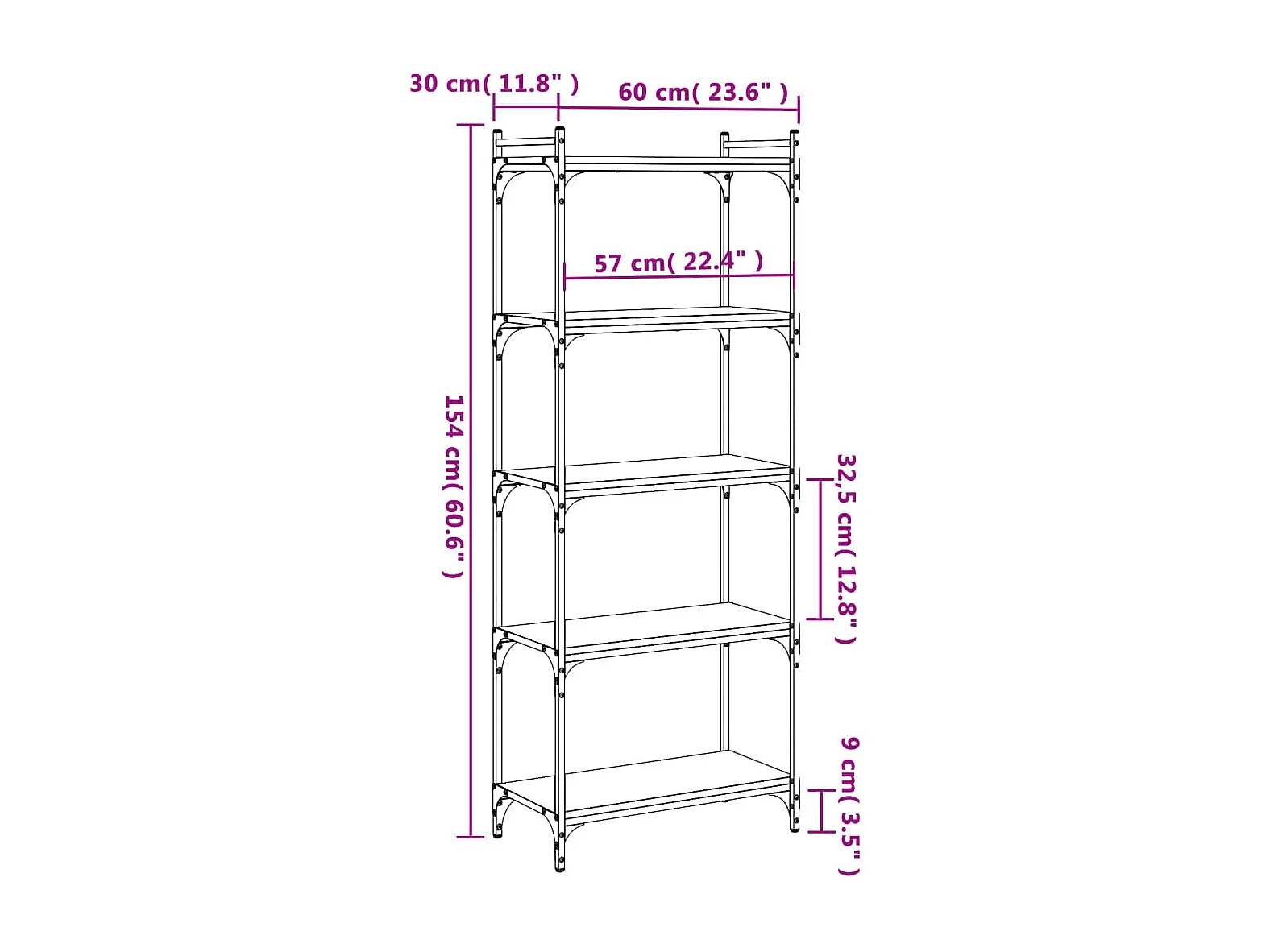 Lars Bibliothèque à 5 niveaux chêne sonoma 60x30x154 cm