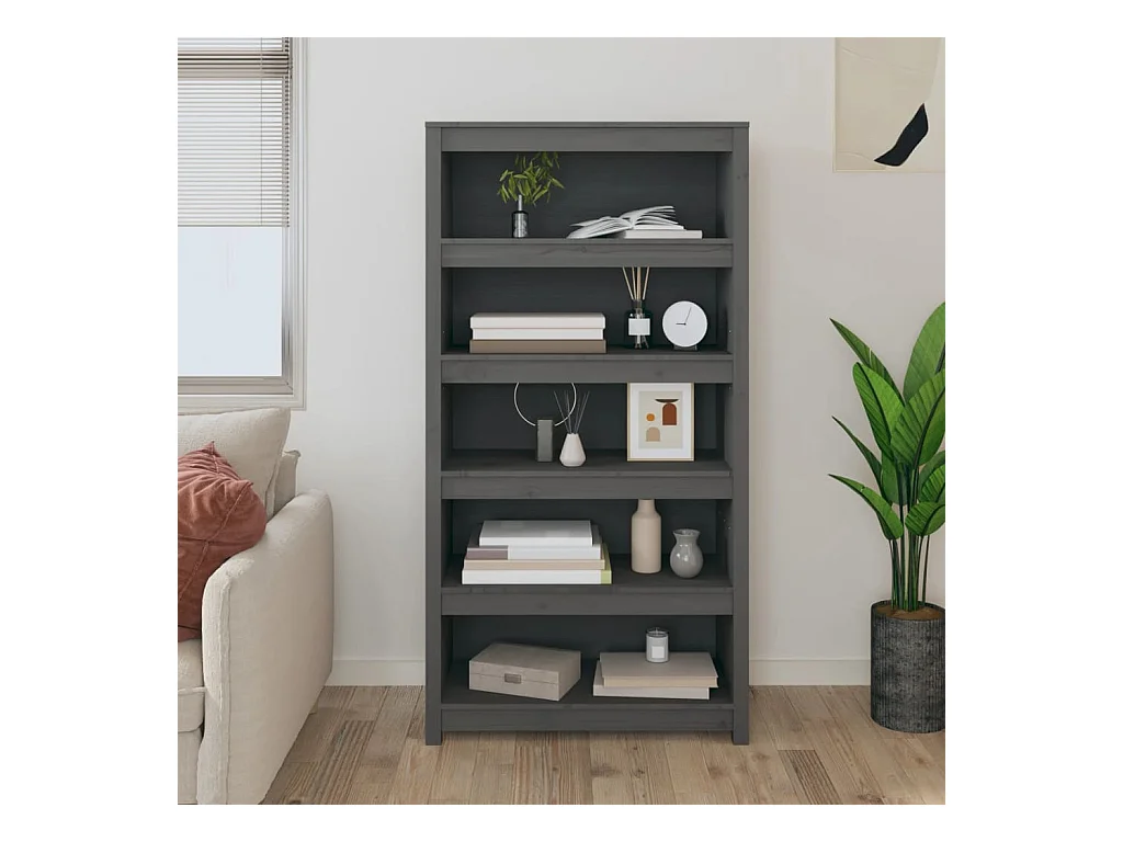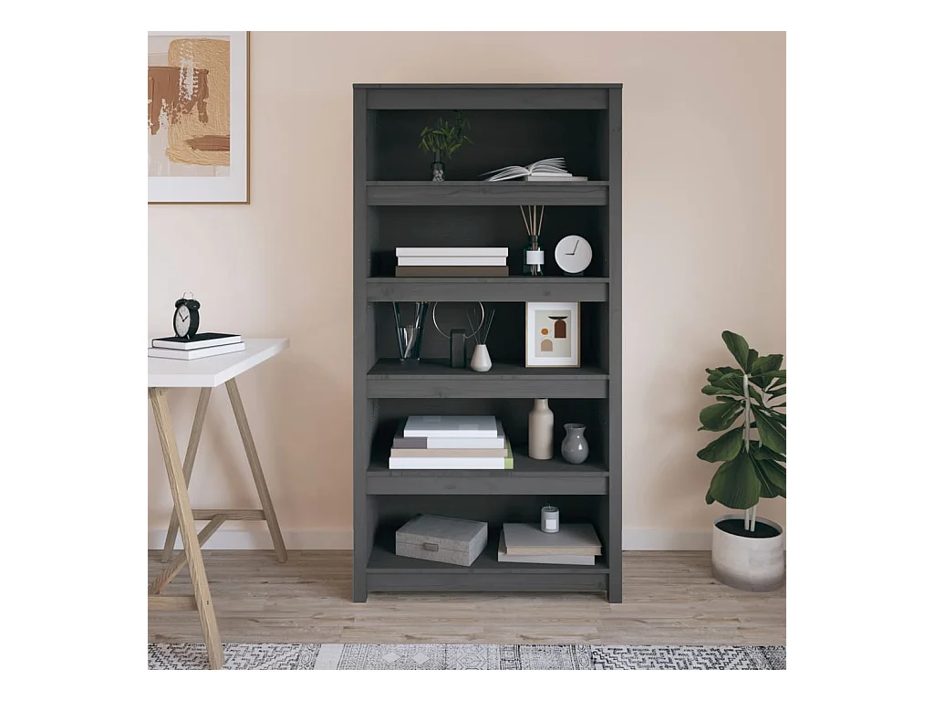 Laurens Bibliothèque Gris 80x35x154 cm Bois de pin massif