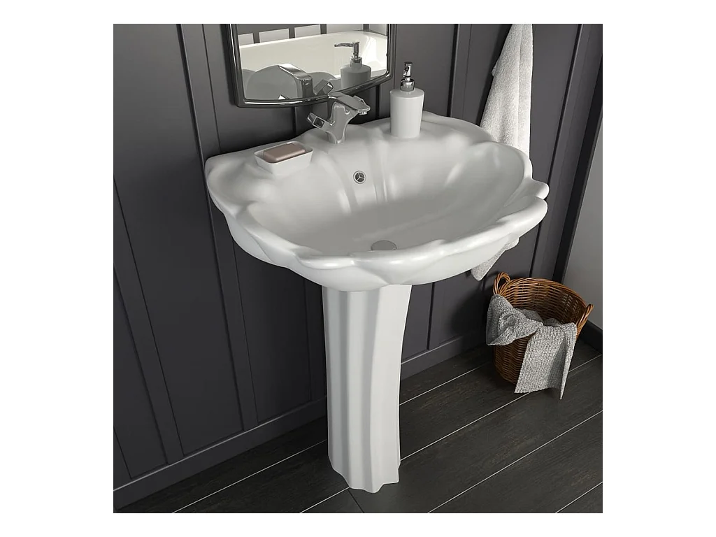Lavabo autoportant-Lavabo salle de bain-Vasque à poser avec socle Céramique Blanc 580x510x200 mm