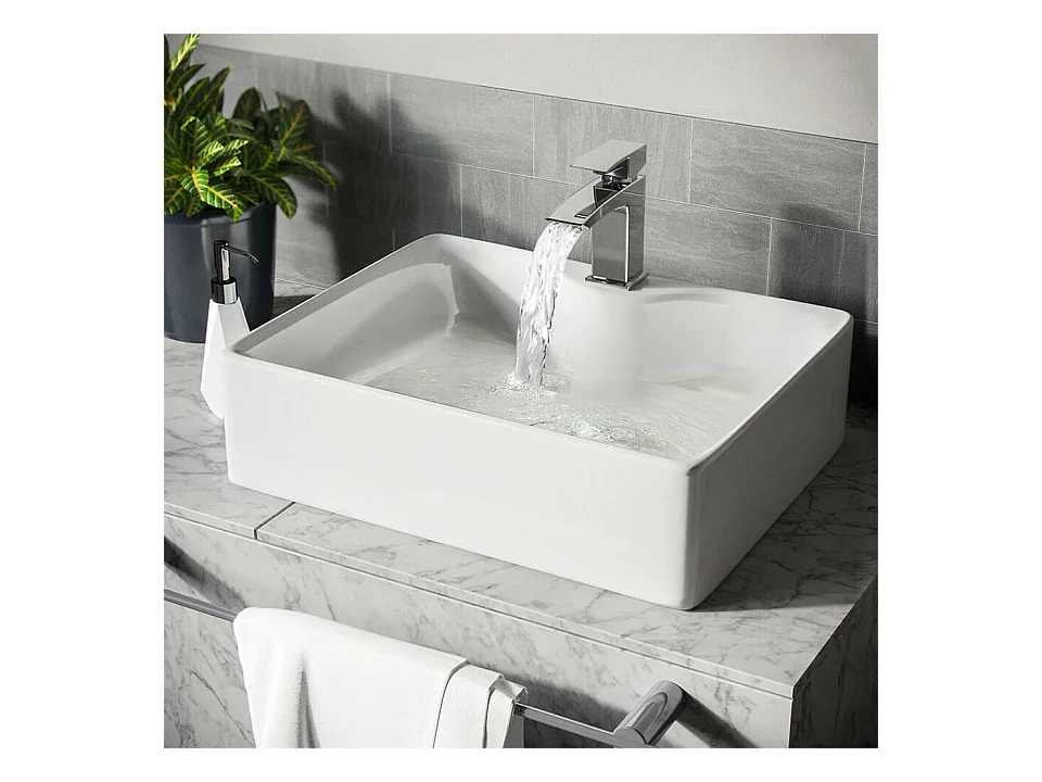 Luxueuse vasque céramique carrée avec trop plein 41 x 41 cm FR109685