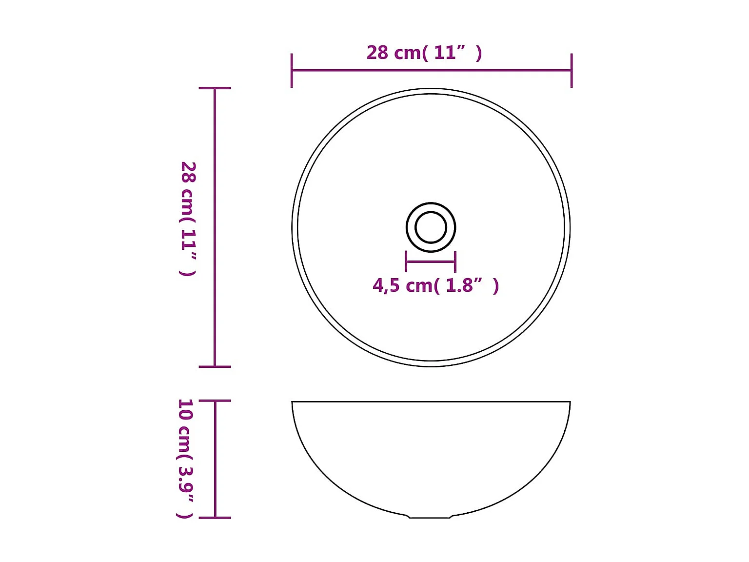 Lavabo rond-Vasque à poser-Lavabo salle de bain Céramique Blanc 41,5 x 13,5 cm