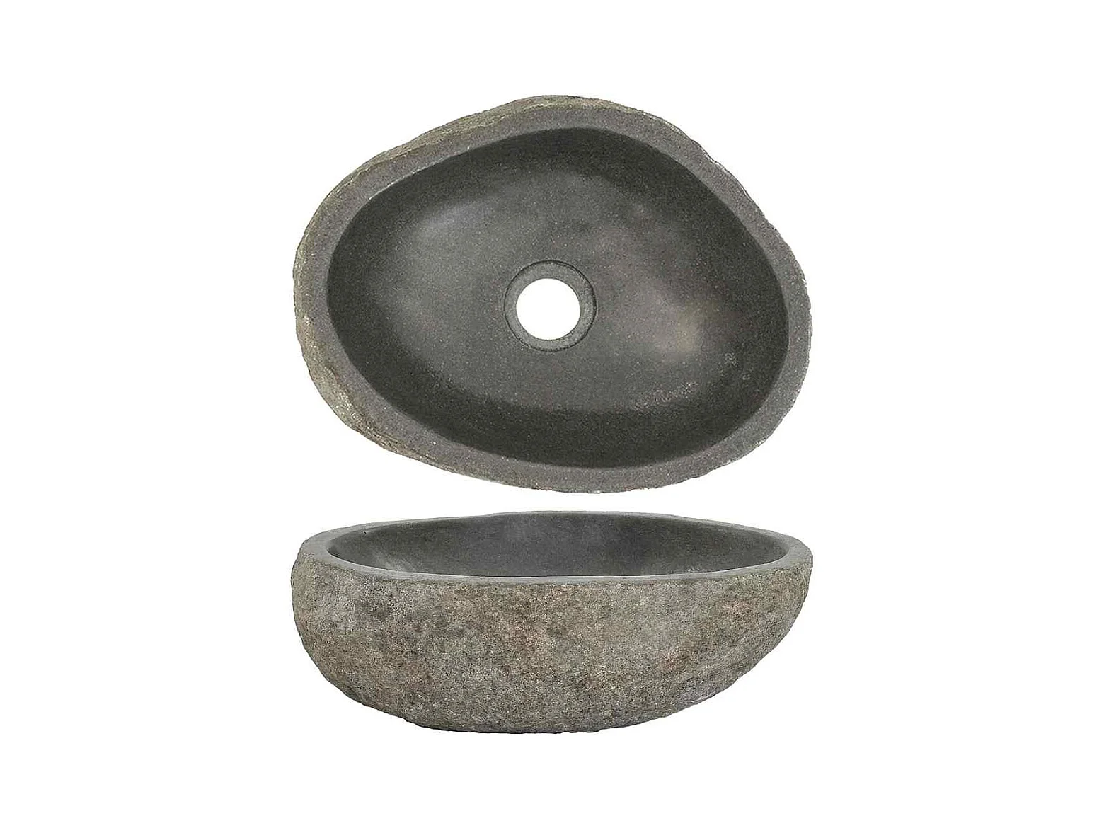 Lavabo salle de bain-Vasque à poser en pierre de rivière Ovale (37-46)x(29-36) cm