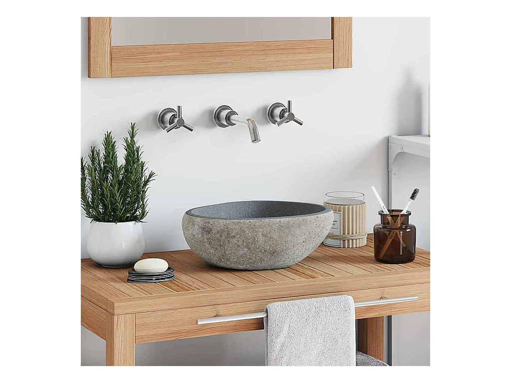 Vasque de salle de bain en pierre de rivière WATU - Couleur grise