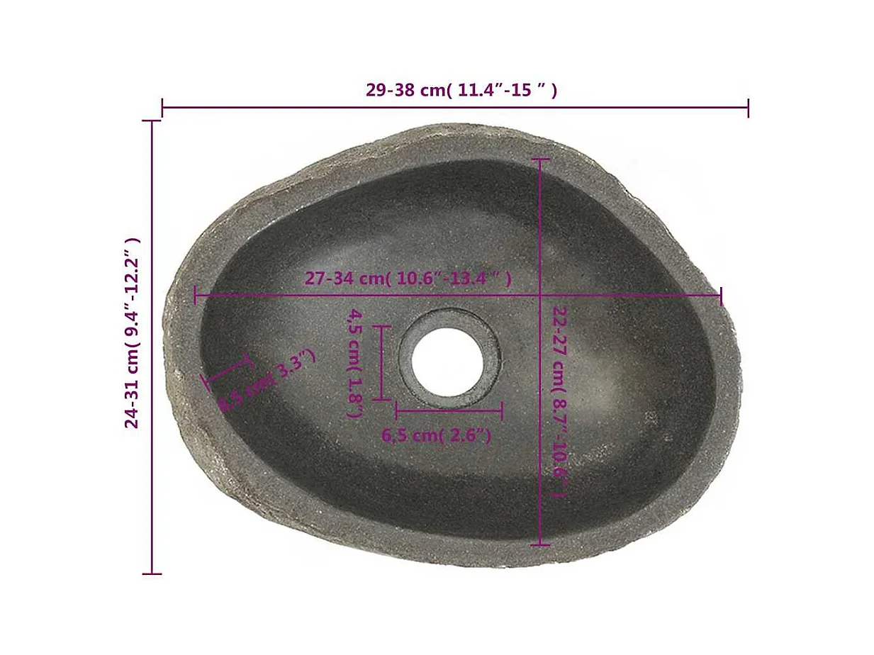 Lavabo salle de bain-Vasque à poser en pierre de rivière ovale (29-38)x(24-31) cm