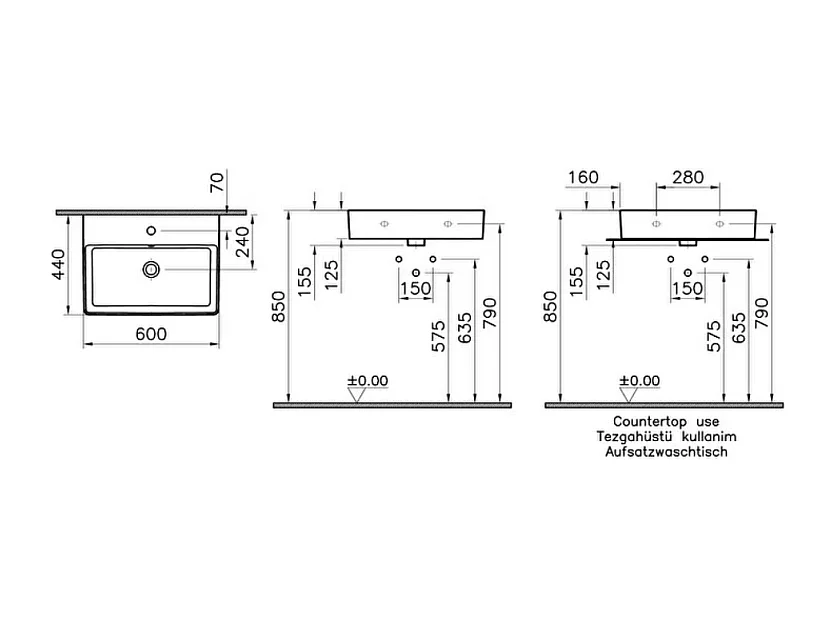 Lavabo VITRA Nuo 60 cm avec trop-plein