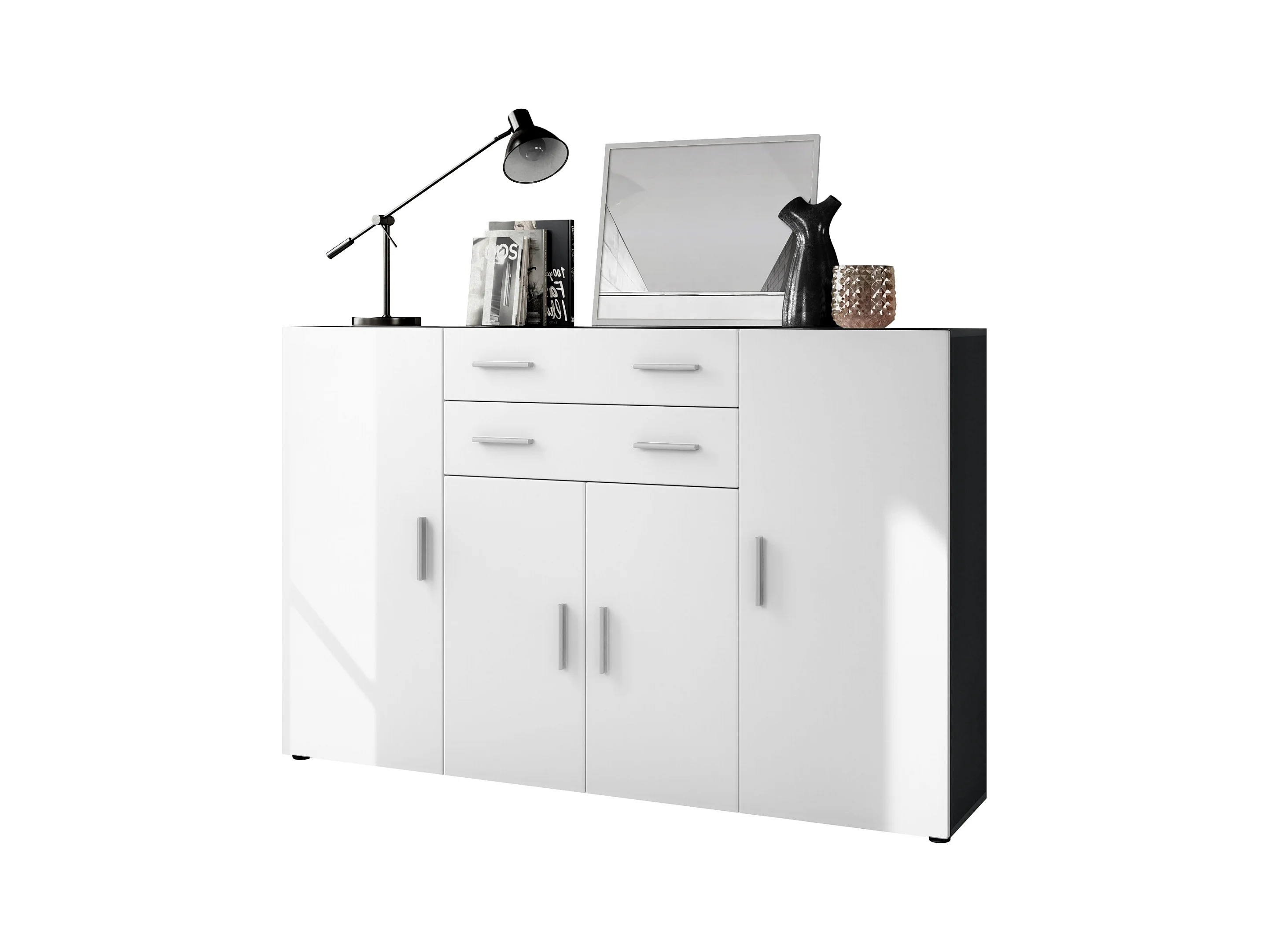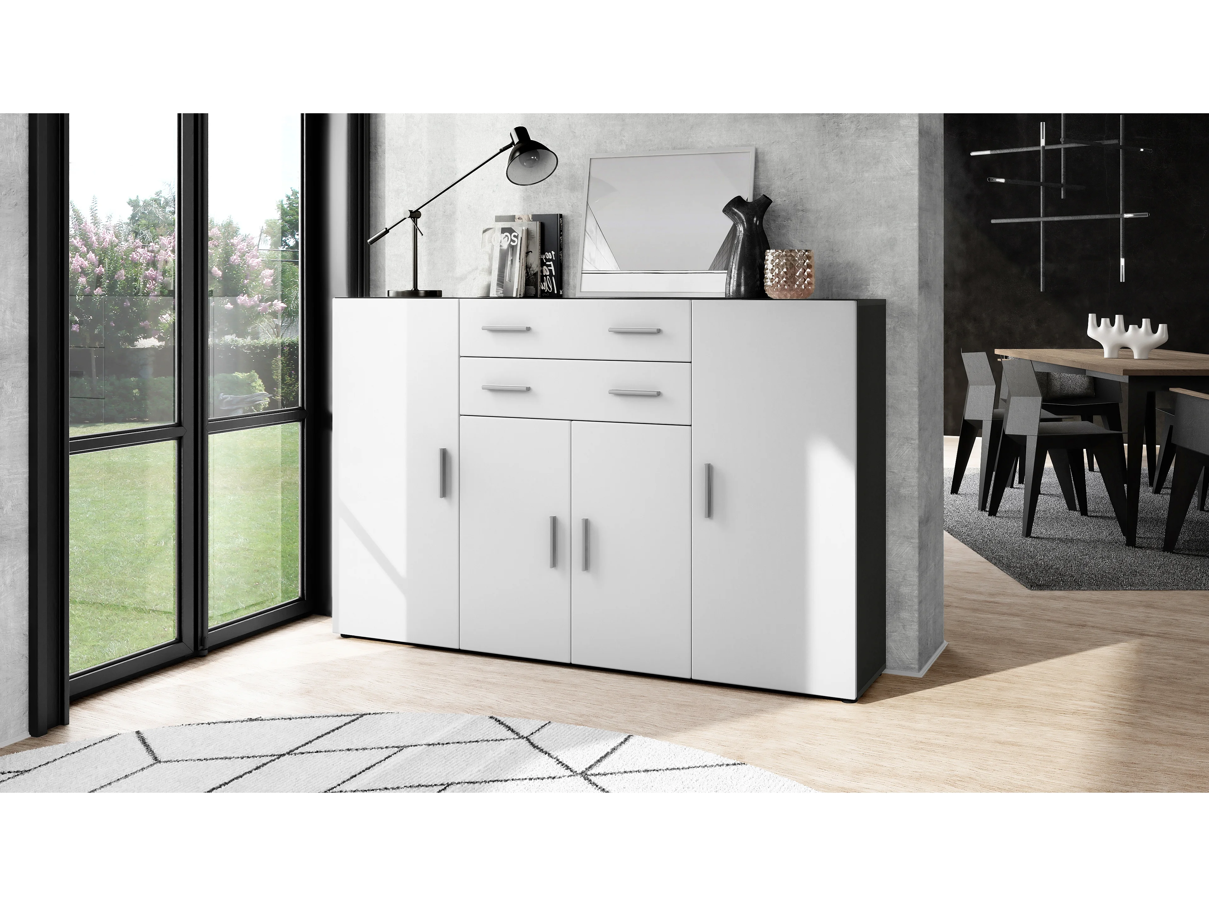 Le Buffet Haut Aron bahut avec 2 tiroirs et 4 portes avec un total de 8 compartiments derrière, anthracite mat/blanc mat (166,5 x 106,5 x 35 cm)