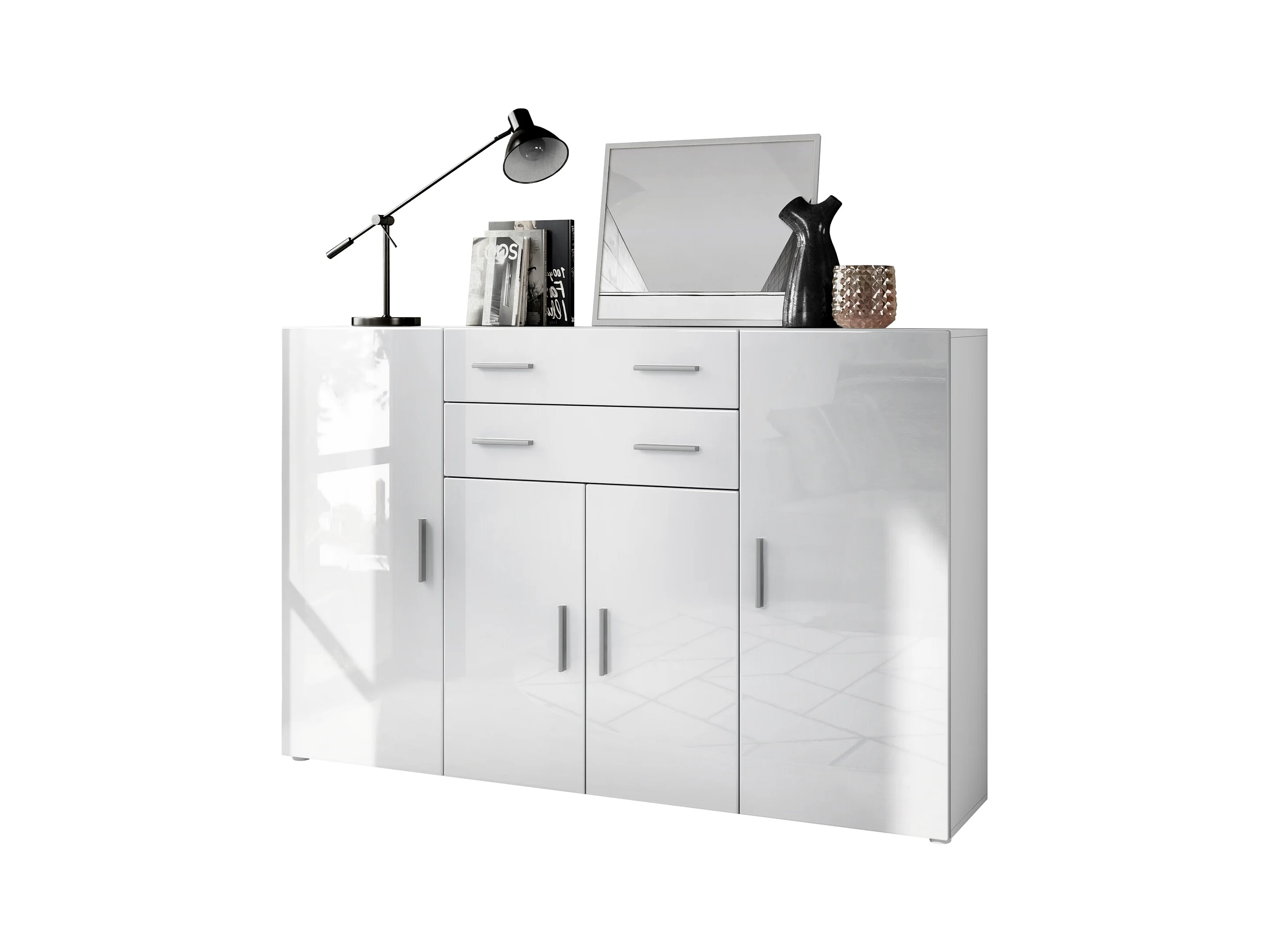 Le Buffet Haut Aron bahut avec 2 tiroirs et 4 portes avec un total de 8 compartiments derrière, blanc mat/blanc haute brillance (166,5 x 106,5 x 35 cm)