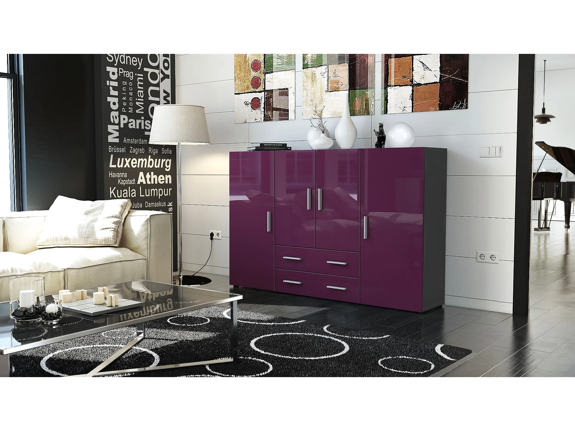 Le Buffet Haut Nora bahut avec 2 tiroirs et 4 portes avec un total de 8 compartiments derrière, anthracite mat/mûre haute brillance (166,5 x 106,5 x 35 cm)