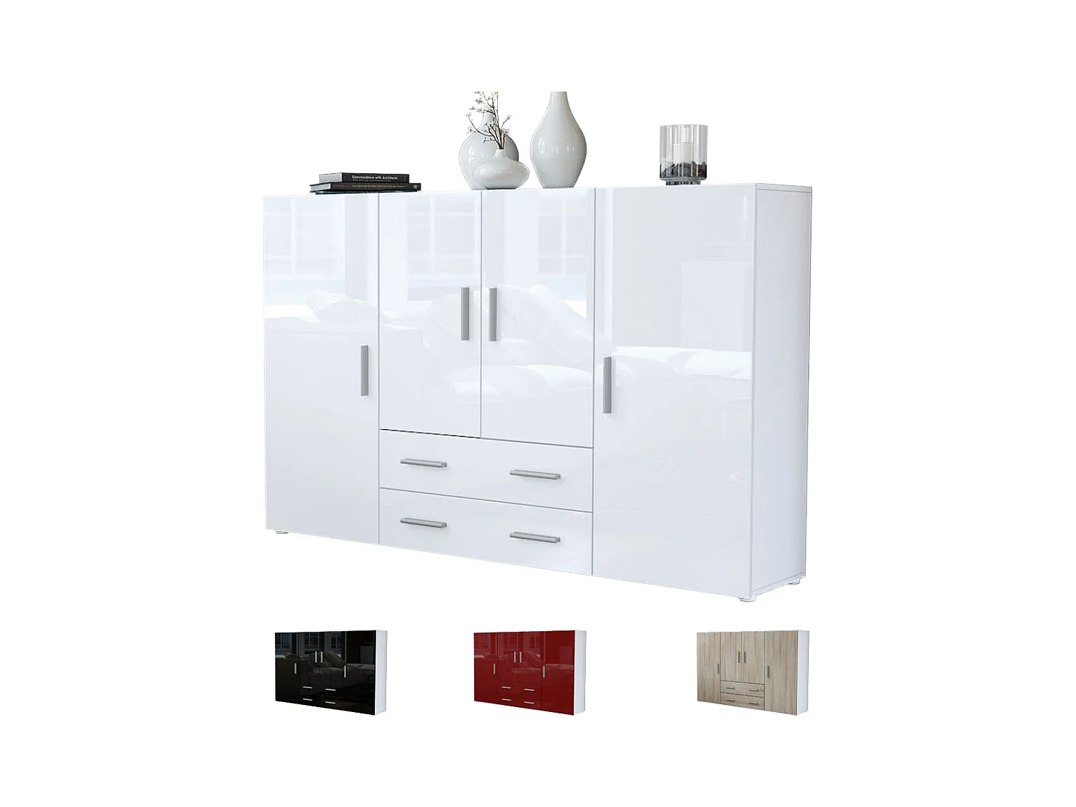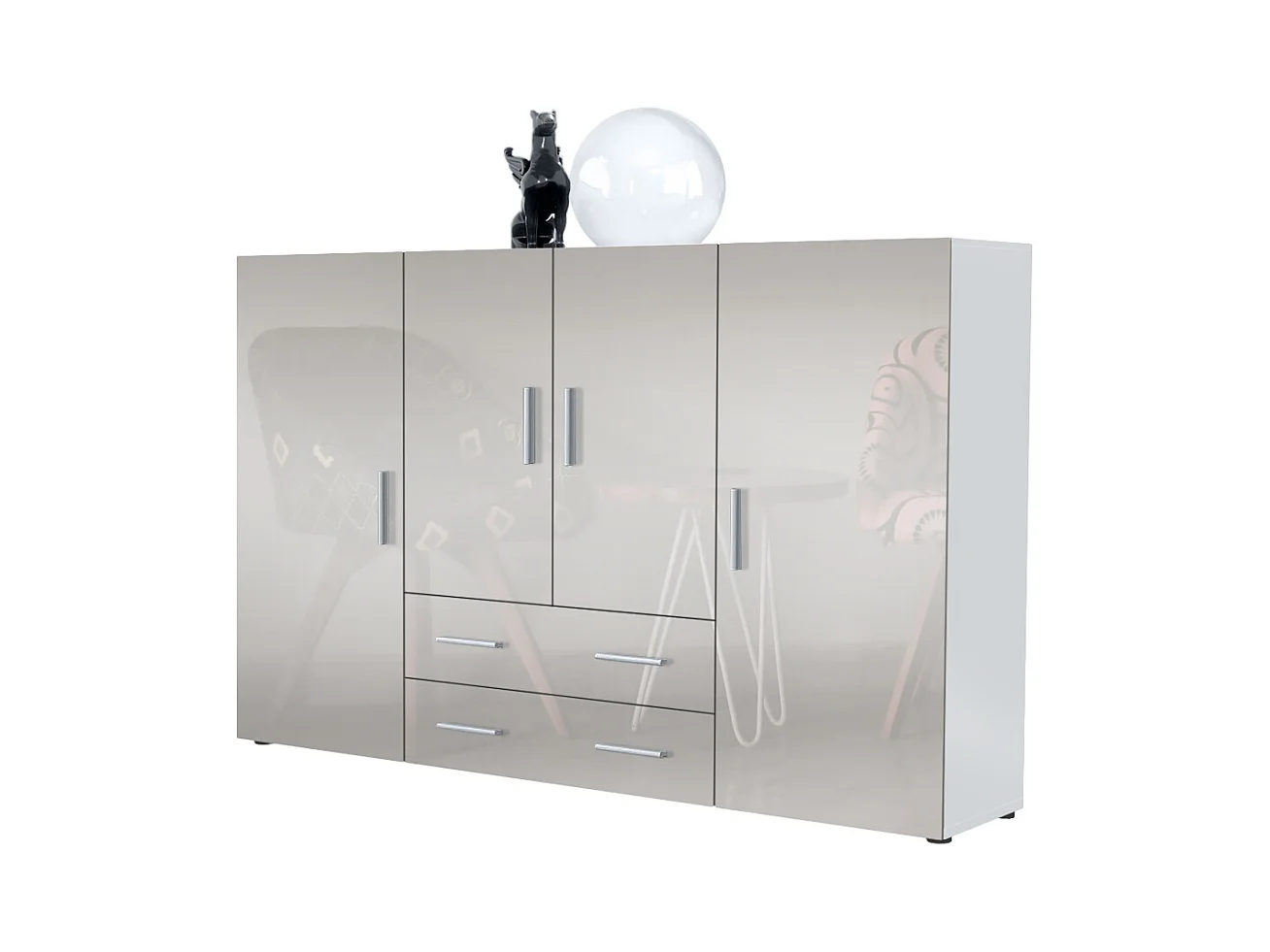 Le Buffet Haut Nora bahut avec 2 tiroirs et 4 portes avec un total de 8 compartiments derrière, blanc mat/gris sable haute brillance (166,5 x 106,5 x 35 cm)
