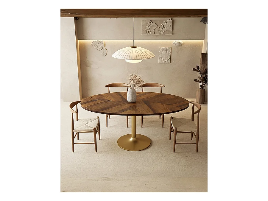 Leaf - Table repas ovale en manguier et métal doré L160 cm 8 pers.