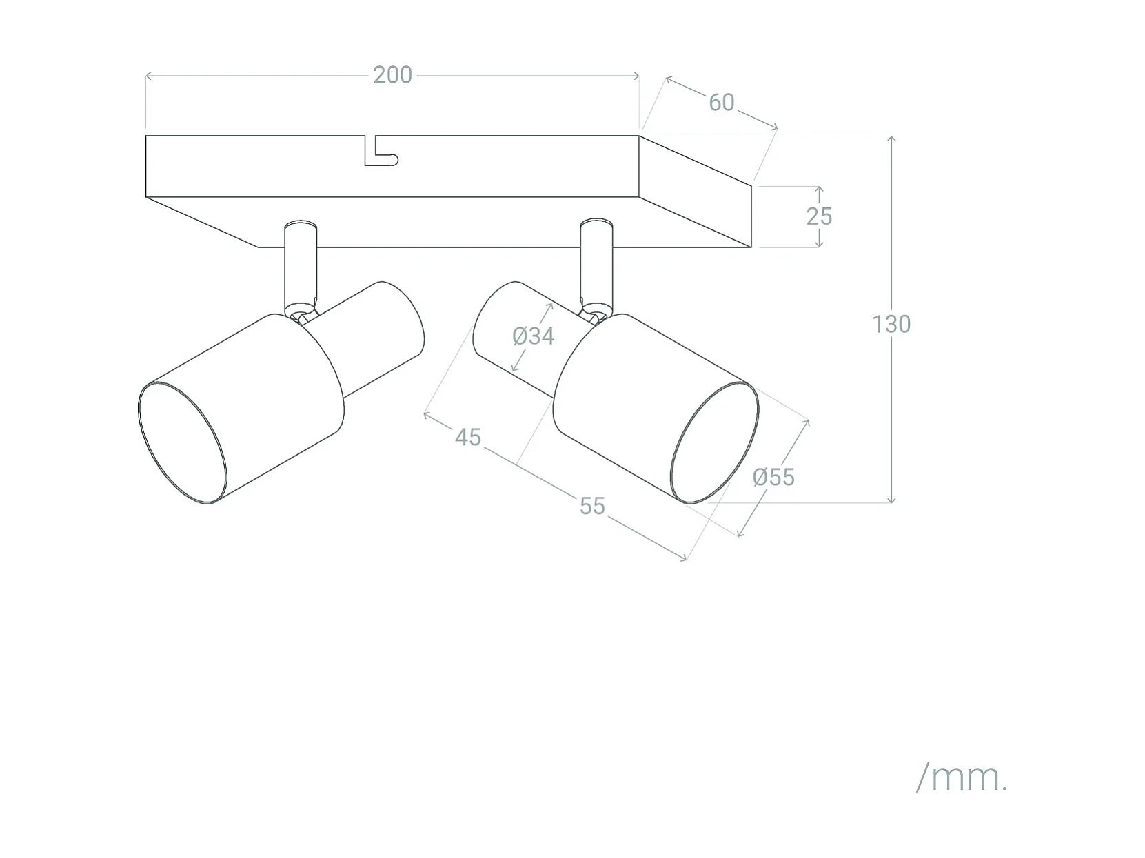 Applique Murale et de Plafond Orientable Métal 2 Spots Albus Black Rose Large Noir