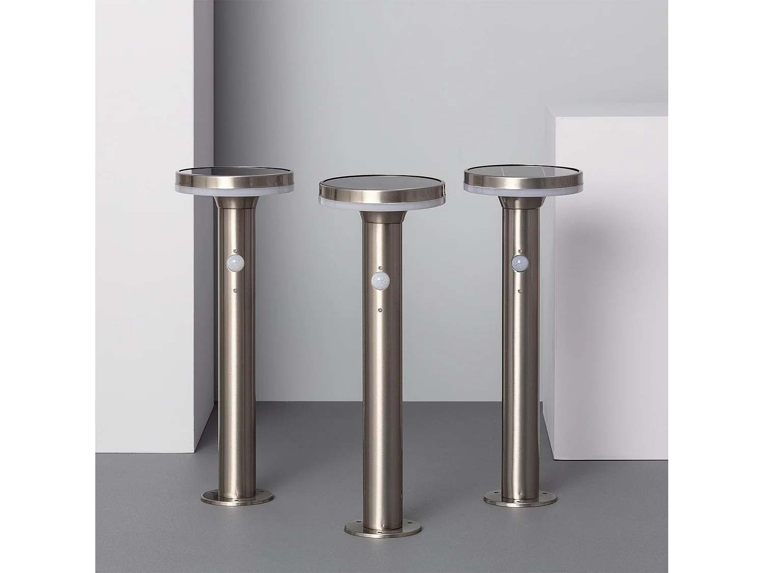 Balise LED Solaire Extérieure Helios Inox 6W en Saillie sur Pied 45cm avec Détecteur de Mouvement Helios Inox 4000K Blanc neutre