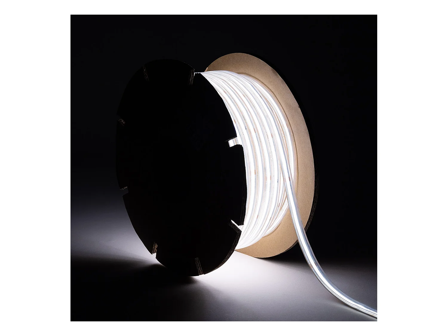 Ruban LED Dimmable 220V COB Auto-redressement 560 LED/m BOBINE 50m 14W/m 1250lm/m SILICONE FLEX IC2 Largeur 10mm Coupe 10cm IP65 6000K Blanc froid